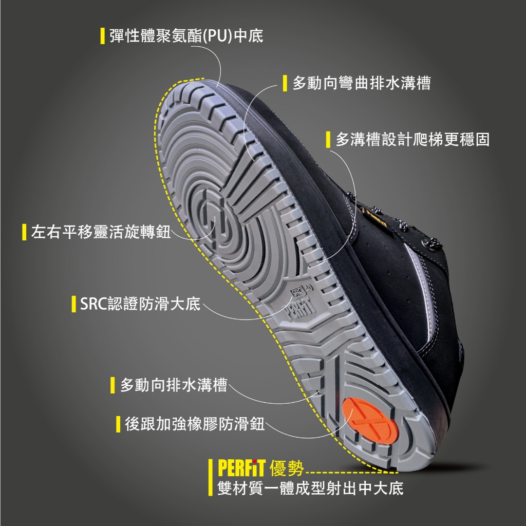 • PERFiT護特【暮黑星點】輕量 緩震 真皮 休閒 板鞋款安全鞋(工作鞋/鋼頭鞋/CNS 20345認證)DL001