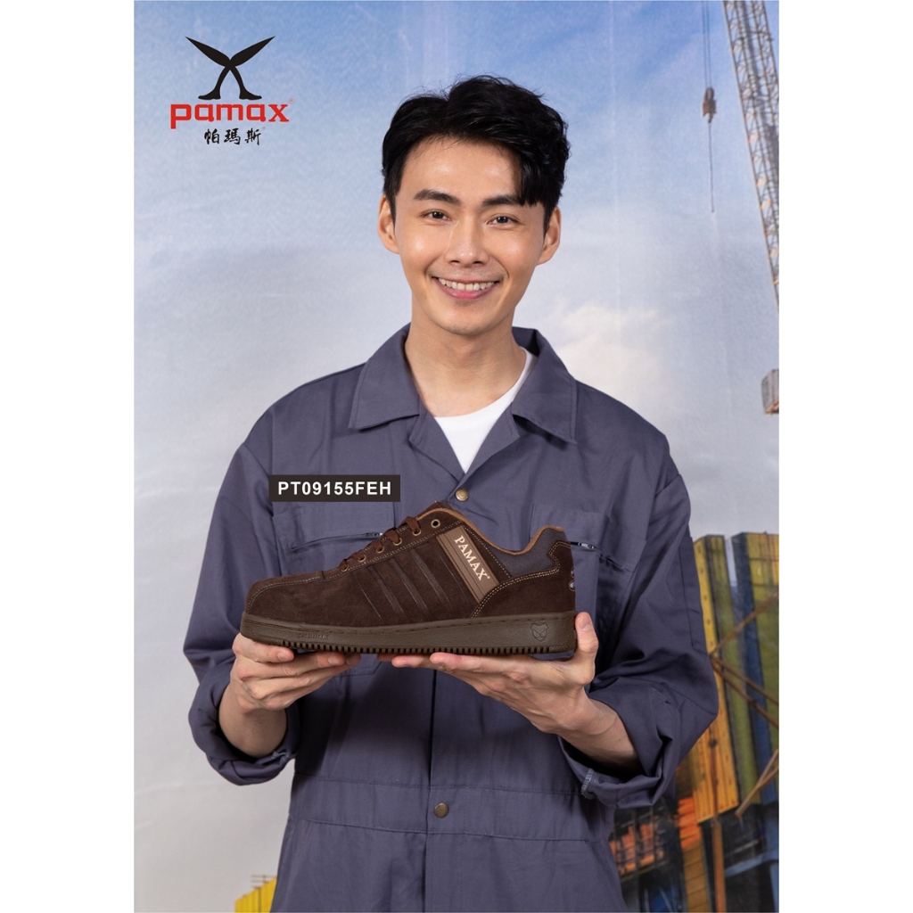 • PAMAX 帕瑪斯-經典設計頂級氣墊安全鞋/PT09155FEH-(咖色)牛皮/反光設計/男生尺寸6-12,安全鞋,男鞋