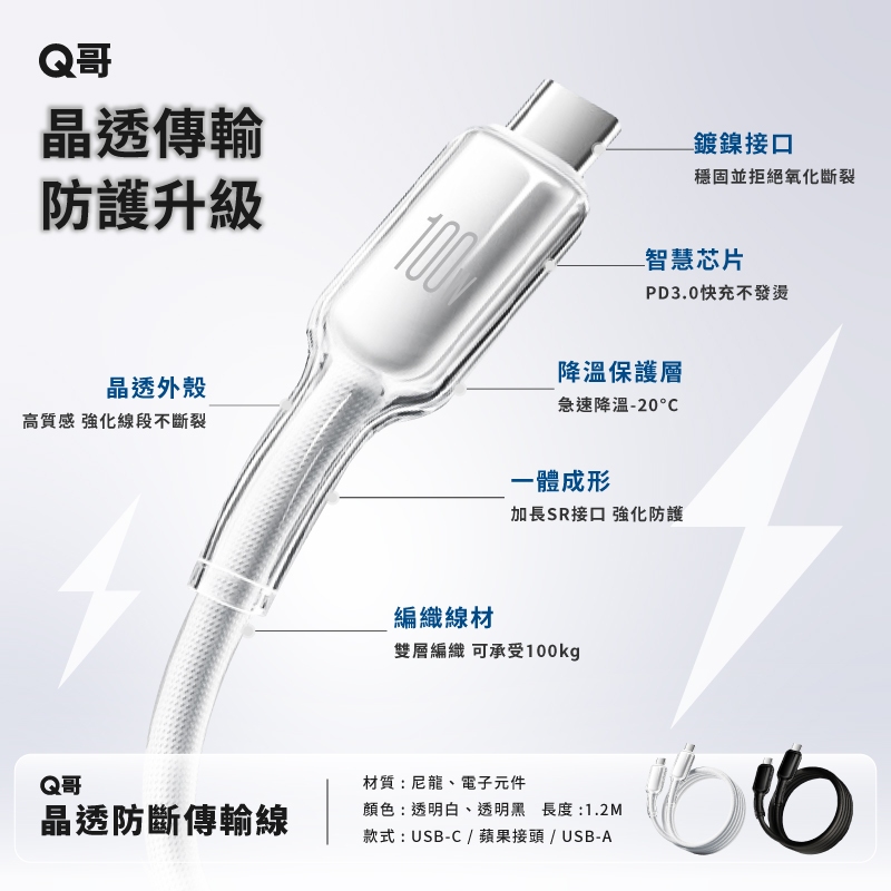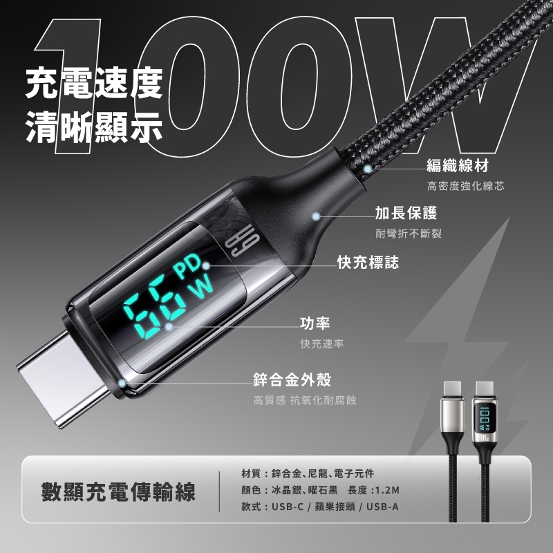 Q哥 數顯充電線 100W TypeC PD快充 適用 蘋果 安卓 傳輸線 USB-A 快充線 編織線 充電線 數顯線TypeC-L(i14以下)27W 黑|TypeC-TypeC 100W 黑|USBA-L(i14以下) 2.4A 黑|USBA-TypeC 60W 黑|TypeC-L(i14以下)27W 銀|TypeC-TypeC 100W 銀|USBA-L(i14以下) 2.4A 銀|USBA-TypeC 60W 銀Cables, Chargers & ConvertersQ哥 旗艦商城|最專業的保護貼手機配件