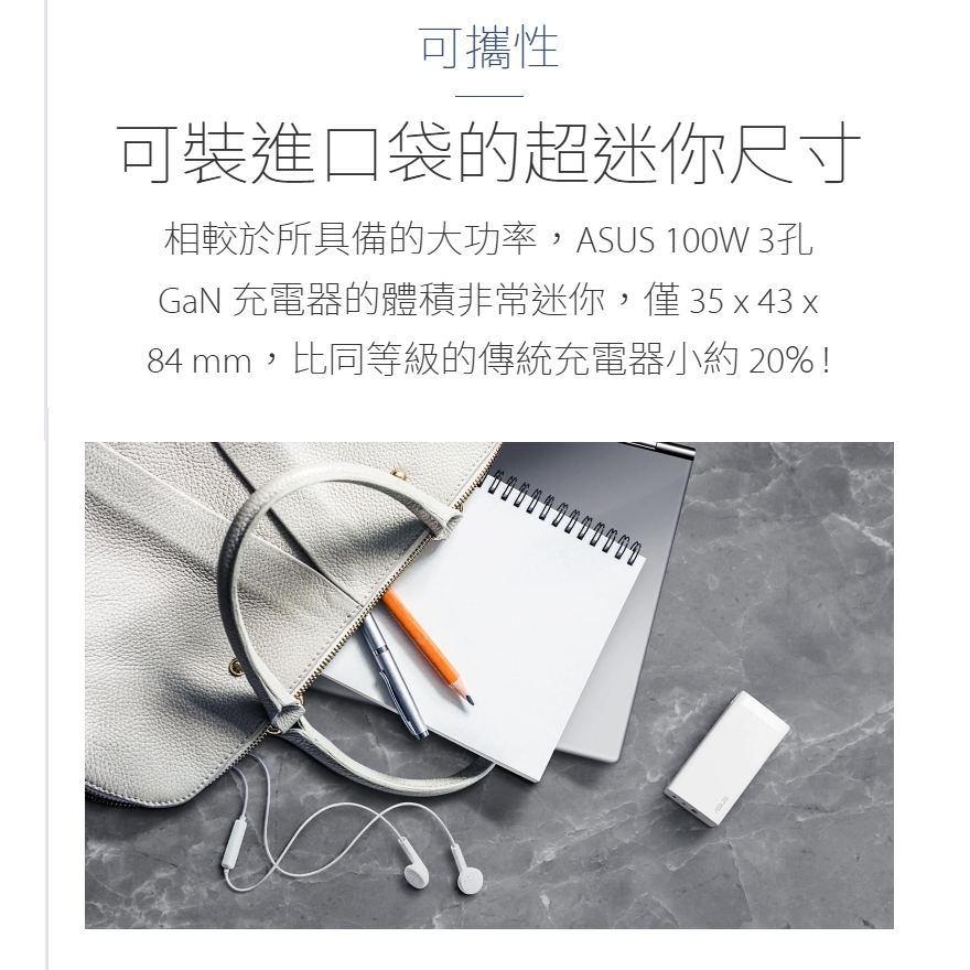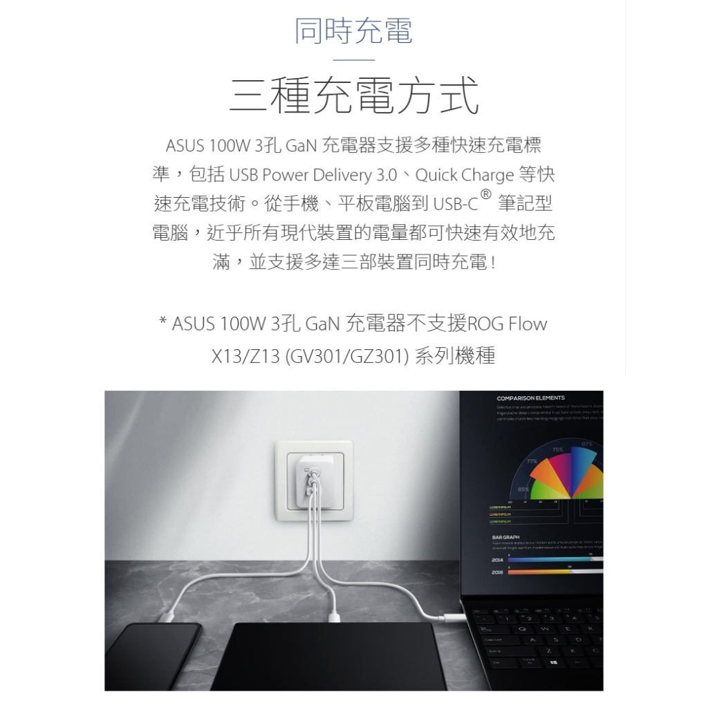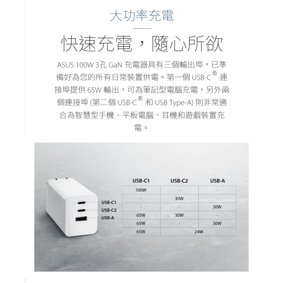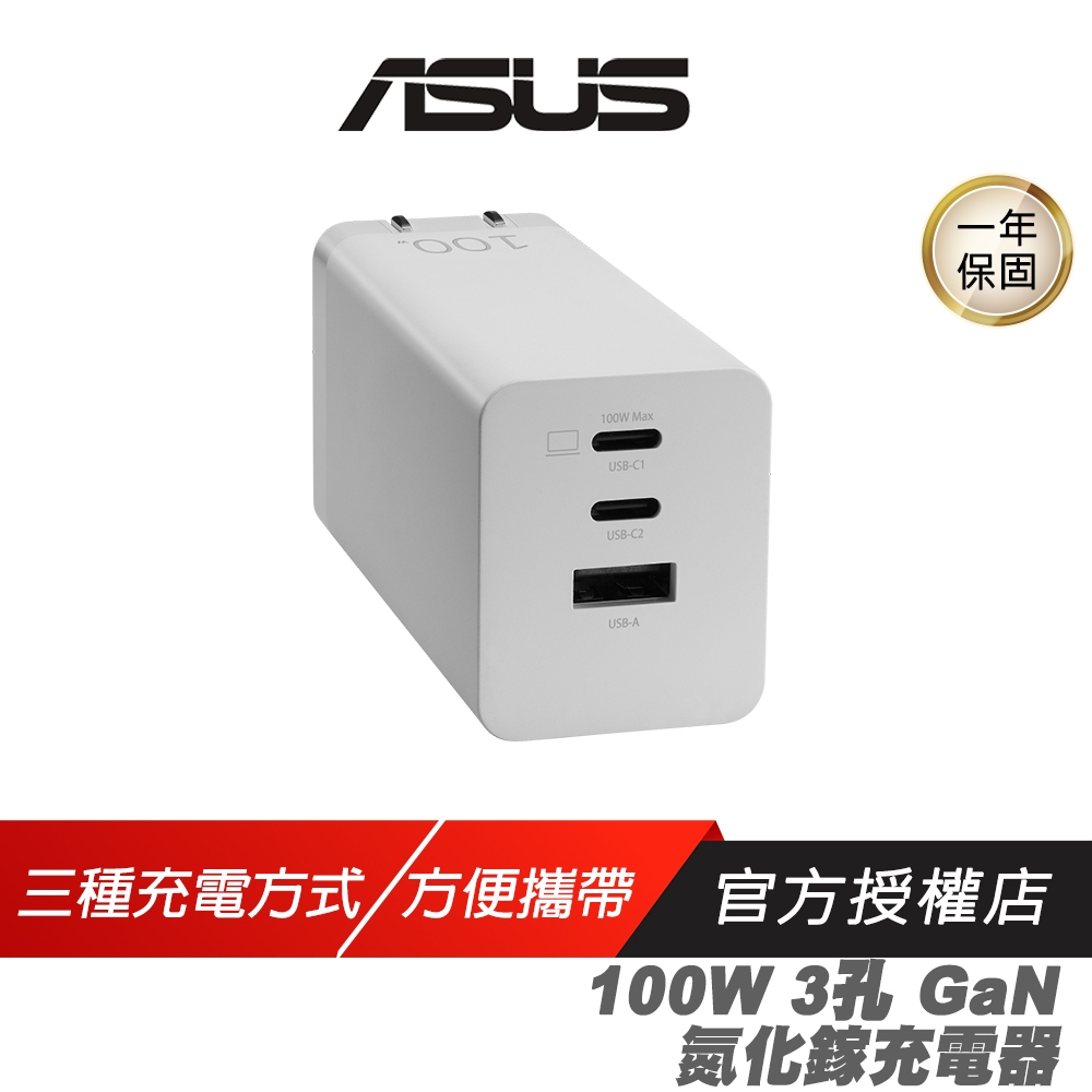 ASUS 華碩 100W 3孔 GaN 氮化鎵 充電器 支援三部裝置同時充電 方便攜帶 充電頭 快充頭 豆腐頭 插頭主商品Cables, Chargers & ConvertersROG 華碩授權店 | 電競周邊館
