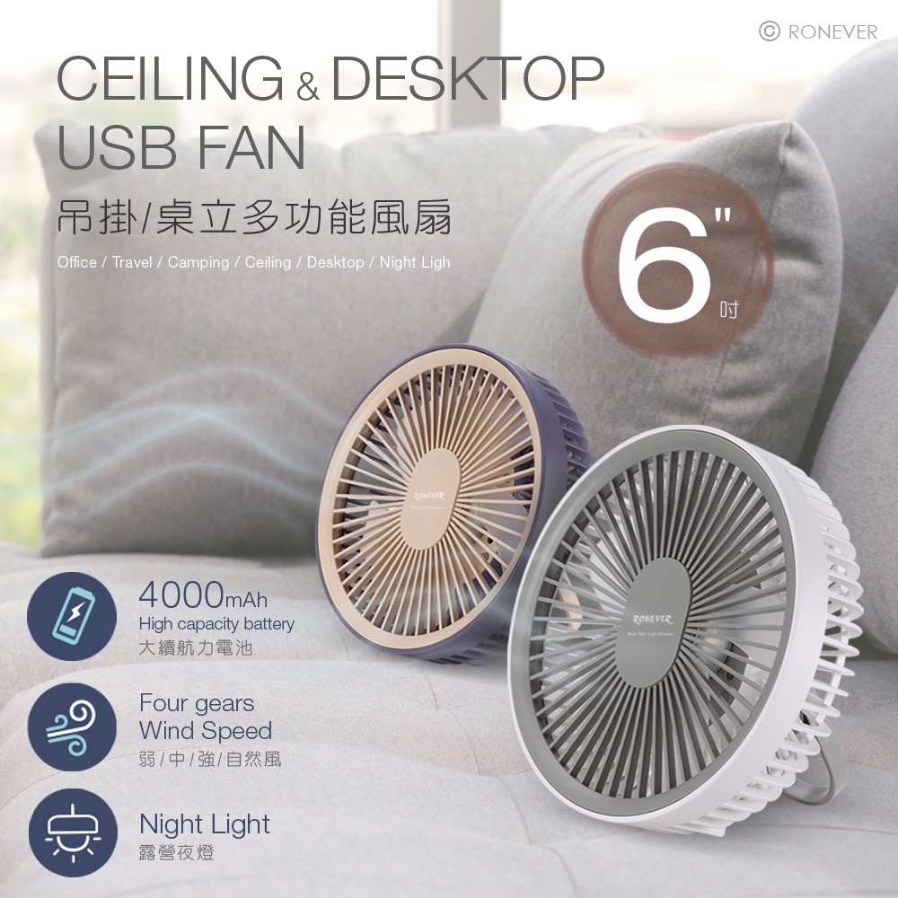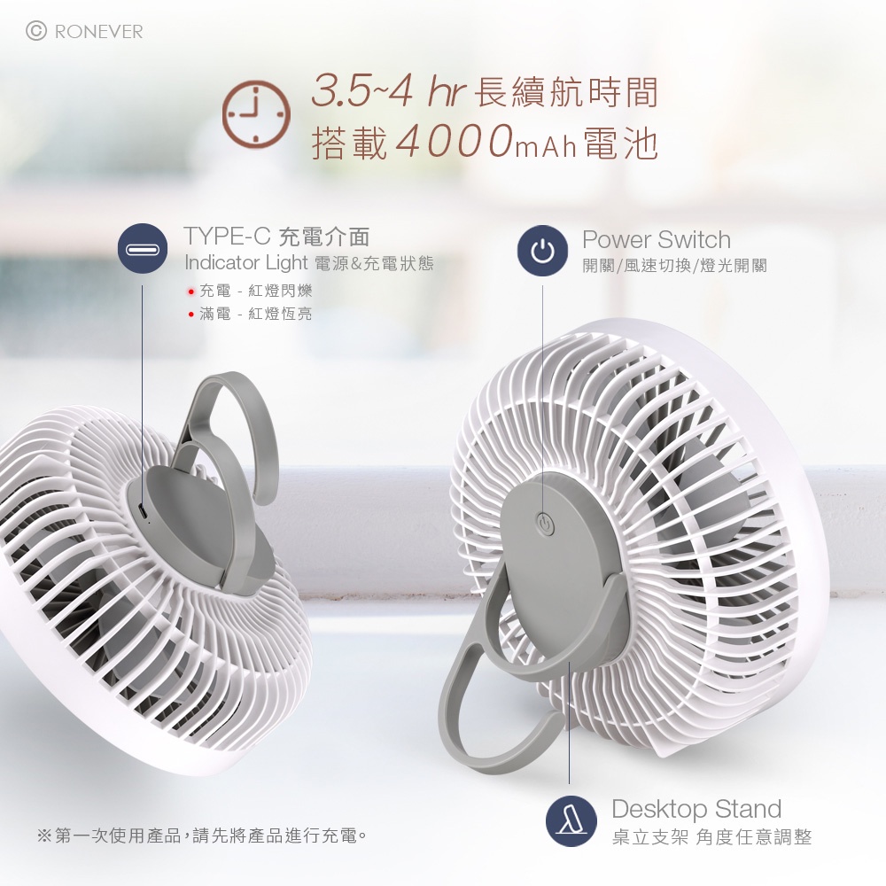 RONEVER PG026 / 吊掛多功能風扇 露營風扇 4000mAh加大電量版 (BSMI檢驗合格)白色|藍色USB & Mobile FansRONEVER 官方品牌館