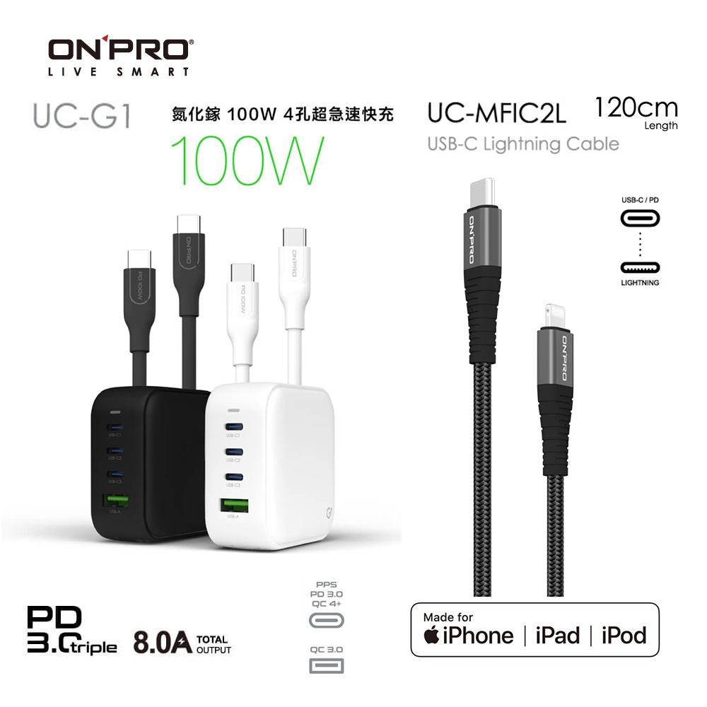 ONPRO UC-G1 100W 氮化鎵4孔PD快充頭+附贈100W快充線+iPhone【編織】快充線快充頭黑(贈線)+iPhone快充線-黑|快充頭白(贈線)+iPhone快充線-黑Cables, Chargers & ConvertersONPRO超急速充電 官方旗艦館