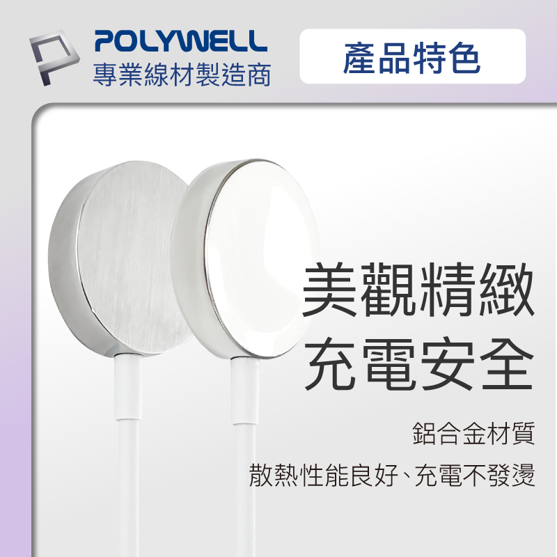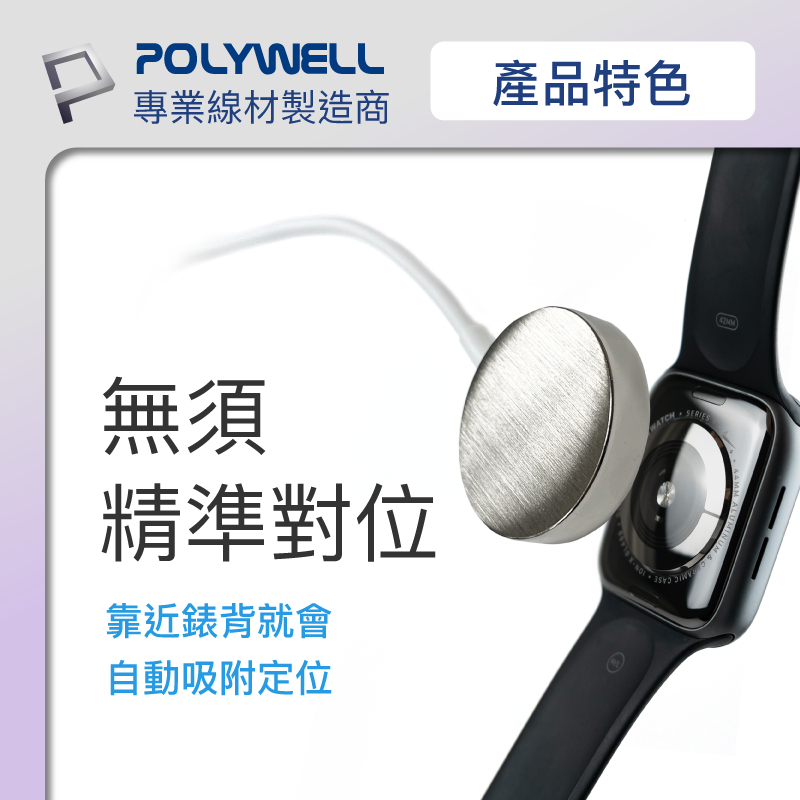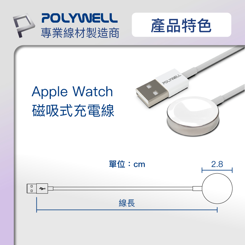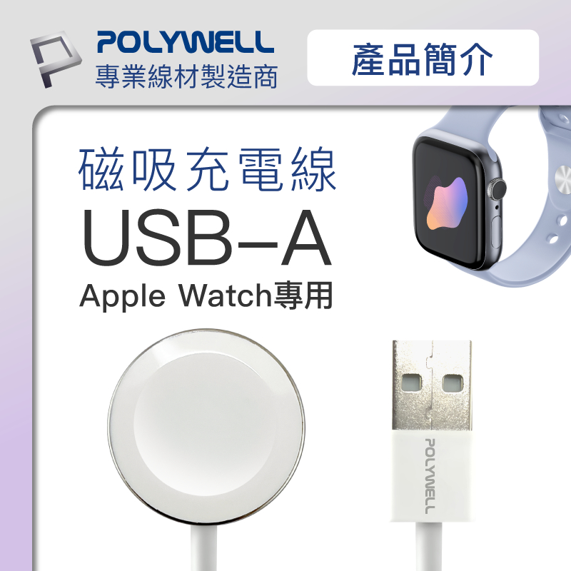 POLYWELL USB磁吸充電線 充電座 適用Apple Watch iWatch 寶利威爾 台灣現貨1米|2米Wearable AccessoriesPOLYWELL寶利威爾官方旗艦店