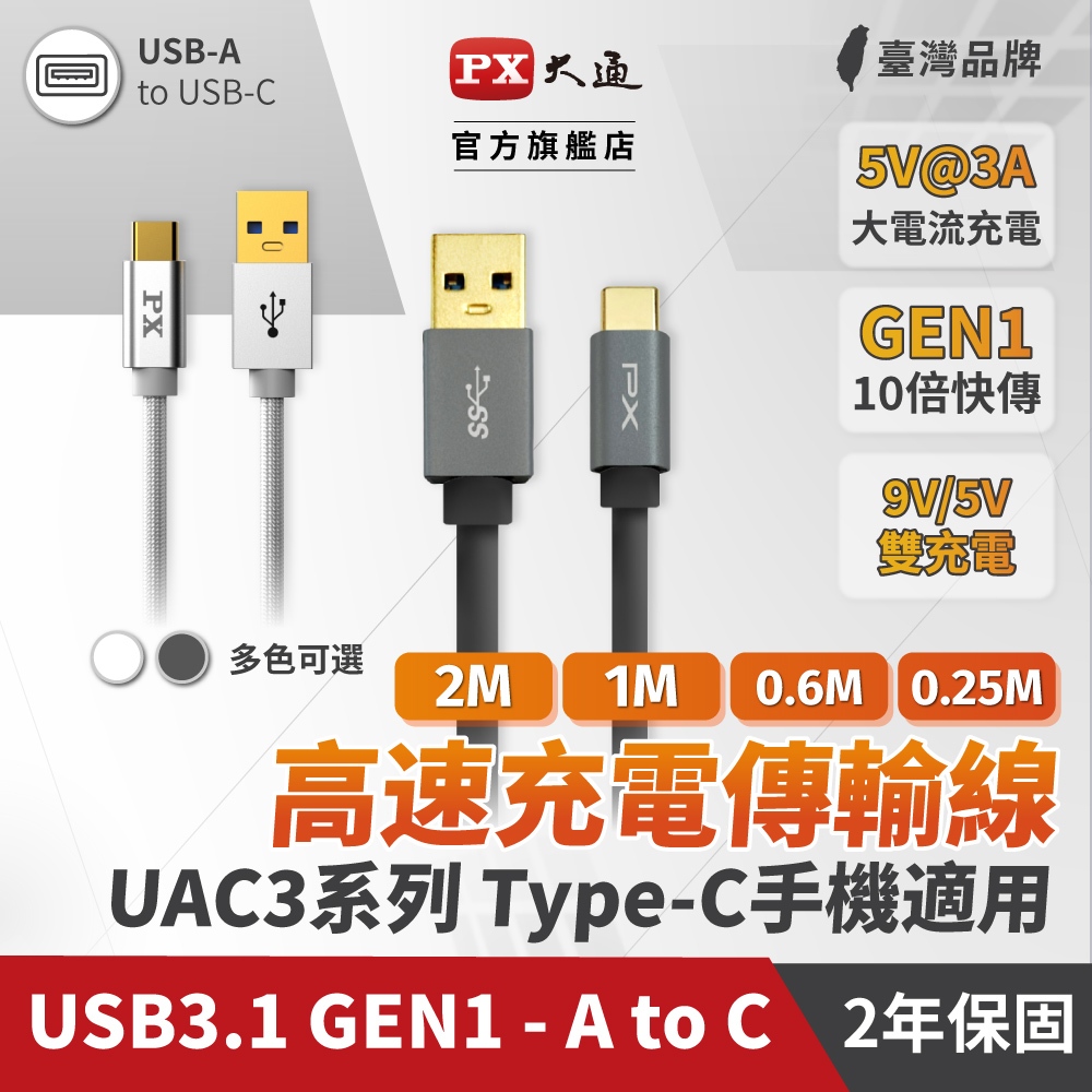 PX大通 UAC3 USB 3.0手機高速充電TYPE-C傳輸線1米/2米(白色/黑色) UAC3 【免運95折】1米(黑色)|1米(白色)|2米(黑色)|2米(白色)Cables, Chargers & ConvertersPX大通電子官方UHD 8K HDMI影音旗艦館