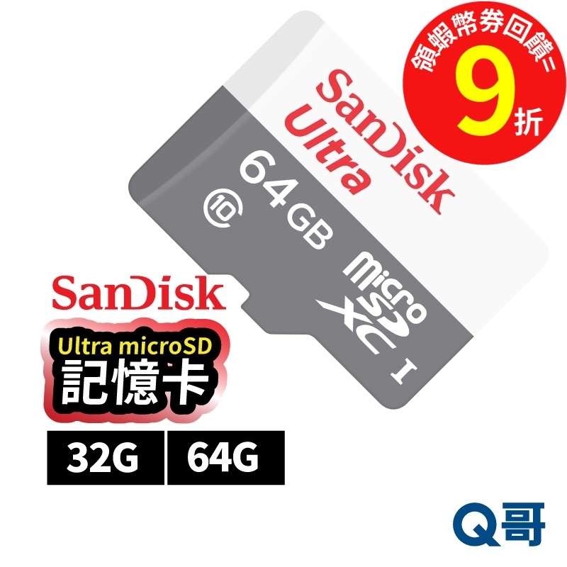 SanDisk Ultra microSD UHS-I【記憶卡】32G 64G 100MB/s 白灰卡 SD卡 SD0132G|64GMemory CardsQ哥 電玩旗艦商城|Switch2 PS5 遊戲片 Xbox ptcg寶可夢