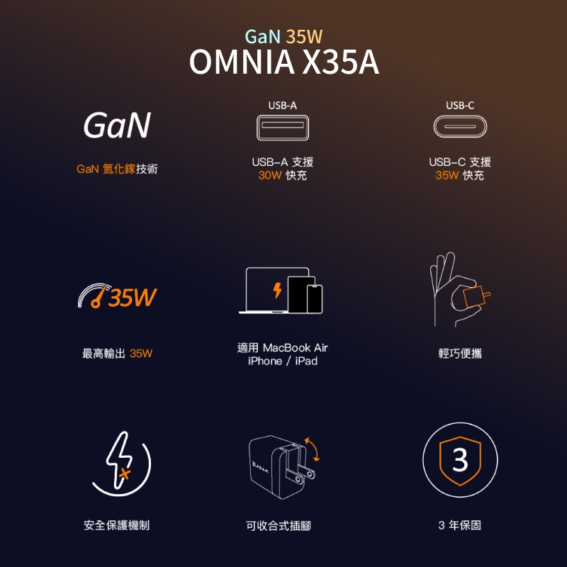 ADAM亞果元素 OMNIA PD 45W 35W GaN 雙孔迷你快充頭 充電頭 快充頭 USB-C 快充頭 AD13X45A 45W 1A1C|黑色|X35C 35W 2C|黑色|X45A 45W 1A1C|白色|X35A 35W 1A1C|黑色|X35A 35W 1A1C|白色|X35C 35W 2C|白色Cables, Chargers & ConvertersQ哥 旗艦商城|最專業的保護貼手機配件