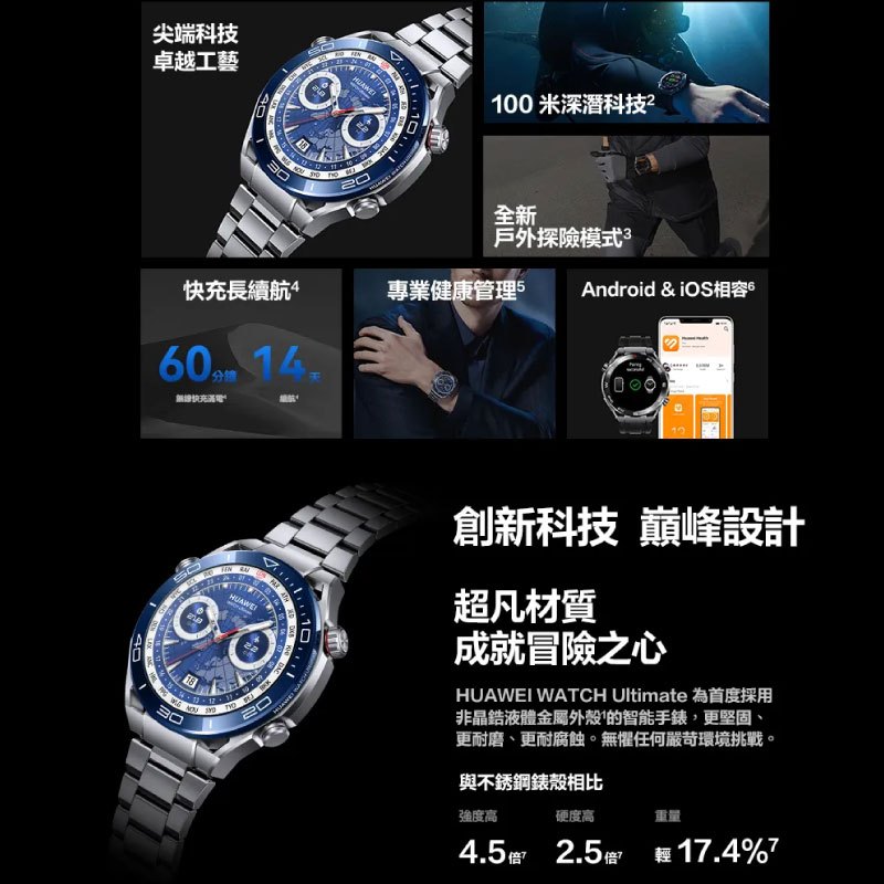 HUAWEI 華為 WATCH Ultimate 48mm【智慧手錶】登山 潛水 智能錶 GPS rpnewhw001潛水款 縱橫銀|勿下單此選項提醒使用10倍蝦幣享9折優惠|登山款 馳騁黑Smartwatches & Fitness TrackersQ哥 電玩旗艦商城|Switch2 PS5 遊戲片 Xbox ptcg寶可夢