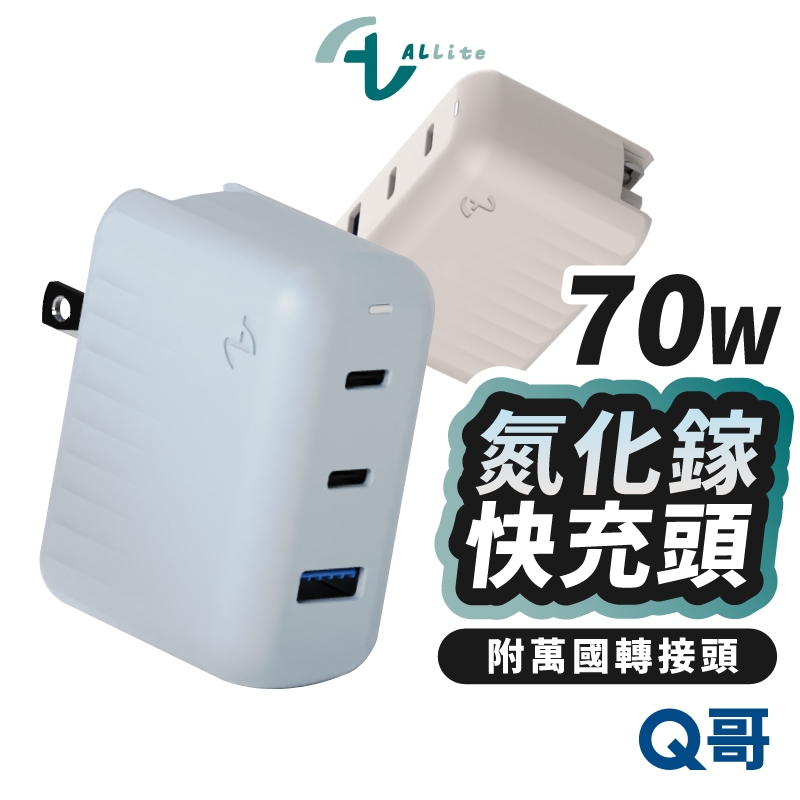 Allite A1 Pro 70W 氮化鎵 三孔 充電器 附萬國轉接頭 TypeC 充電頭 快充頭 豆腐頭 ALI04淺灰褐|1A+2C|霧霾藍|1A+2CCables, Chargers & ConvertersQ哥 旗艦商城|最專業的保護貼手機配件