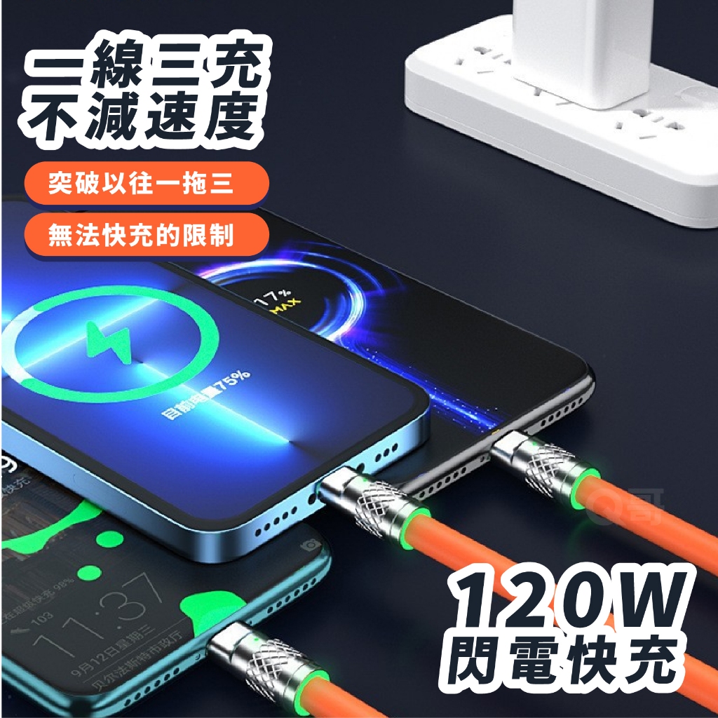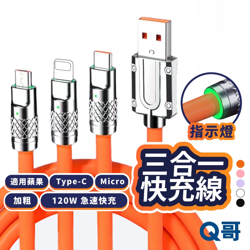 120W 三合一 充電線 USB TypeC 適用 蘋果 iPhone Micro 快充線 傳輸線 鋅合金 KY006藍色|黑色|白色|粉色|紫色|橙色Cables, Chargers & ConvertersQ哥 旗艦商城|最專業的保護貼手機配件