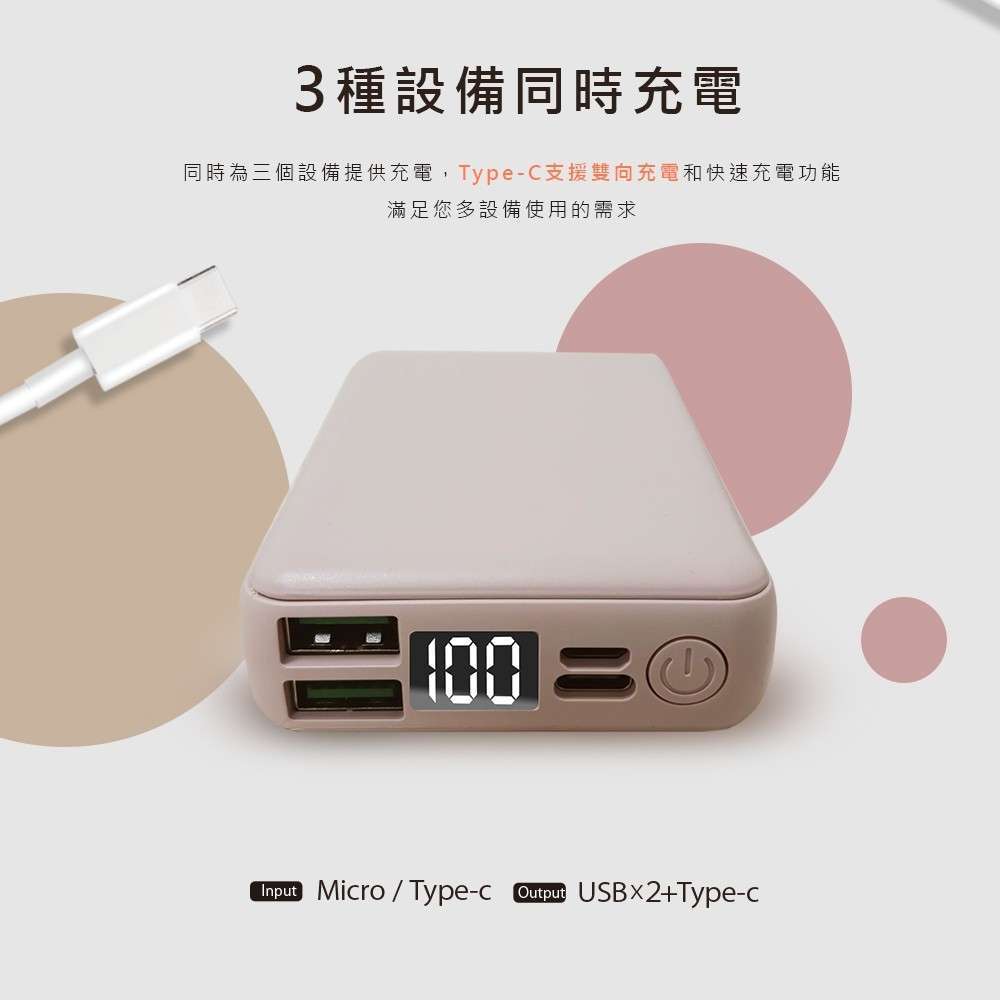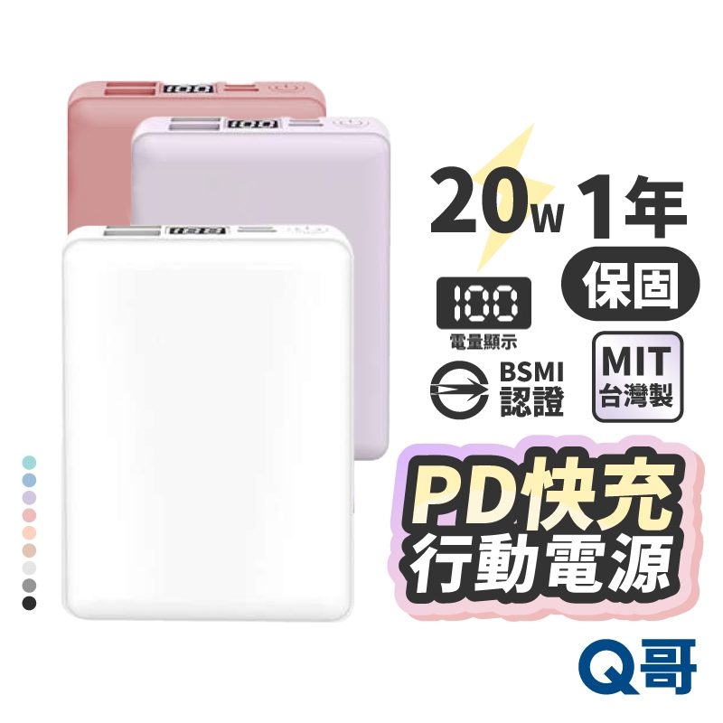 PD快充 行動電源 10000mah 20W 電量顯示 快充 TypeC 行充 USB-A Micro隨充 MCK009水泥灰|極光紫|靜謐藍|瑰蜜粉|可可奶|白|黑|淡粉|瑰蜜粉 福利品Powerbanks & BatteriesQ哥 旗艦商城|最專業的保護貼手機配件
