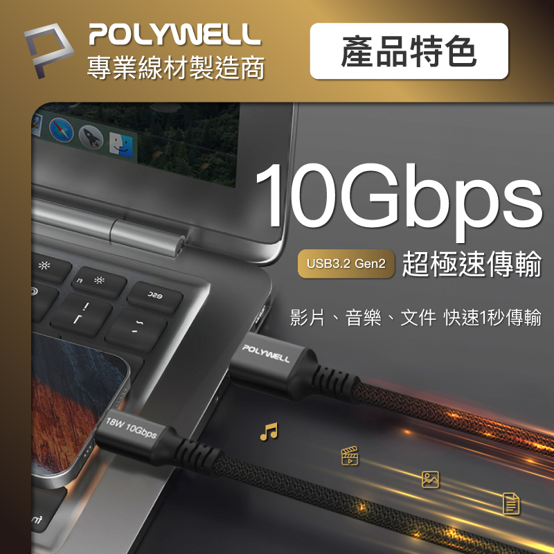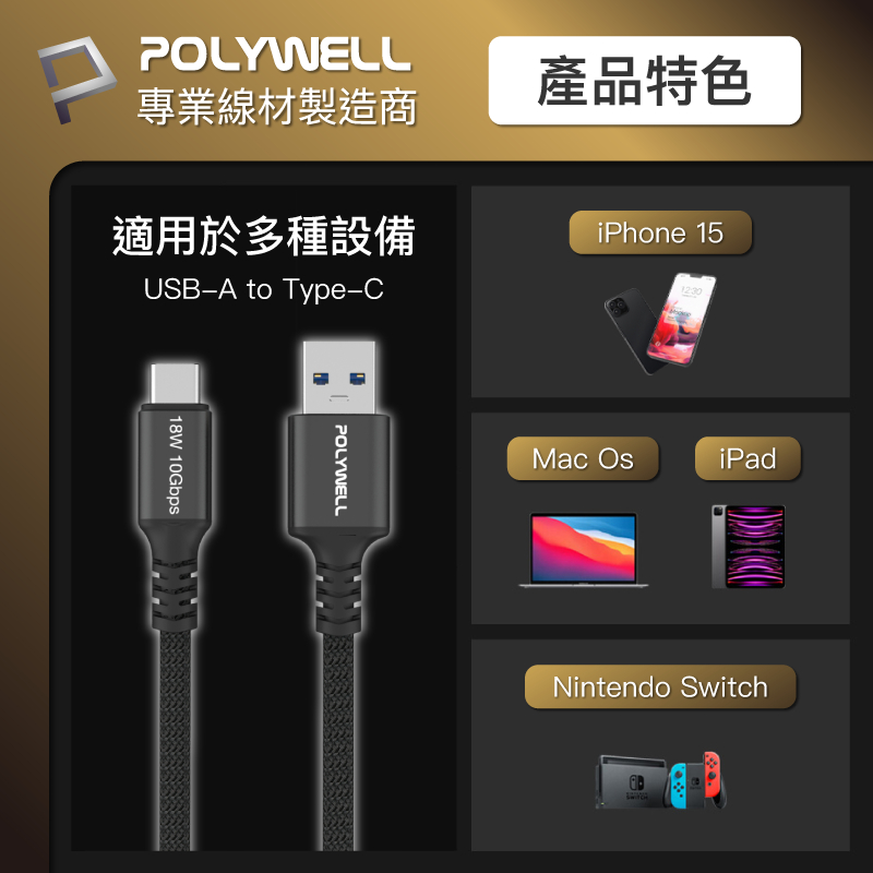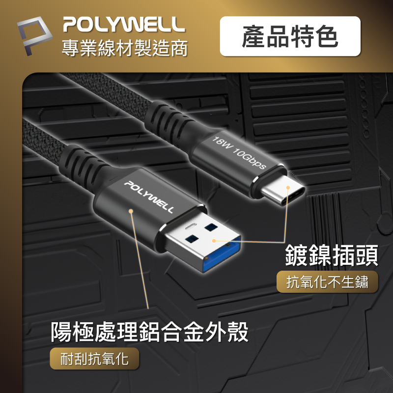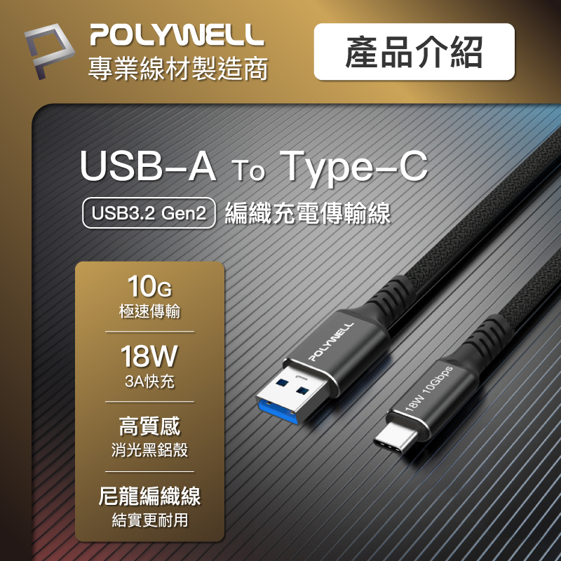 POLYWELL 黑金剛 USB3.2 A To Type-C Gen2 10G 18W 傳輸充電線 寶利威爾 台灣現貨黑金剛,1米/100公分|黑金剛,2米/200公分|一般款,1米/100公分|一般款,2米/200公分Cables, Chargers & ConvertersPOLYWELL寶利威爾官方旗艦店