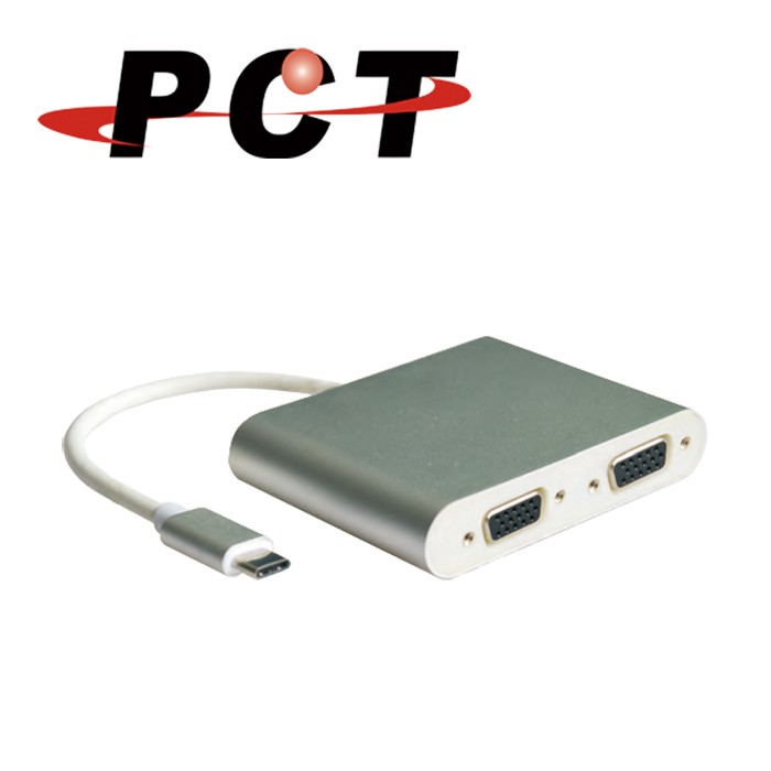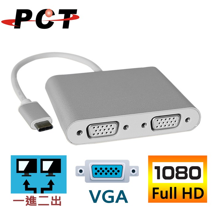 【PCT】USB type-C轉2埠VGA轉接器/分配器(UVS302)銀色|太空灰Cables, Chargers & ConvertersPCT銘鵬科技 KVM USB-C專賣店