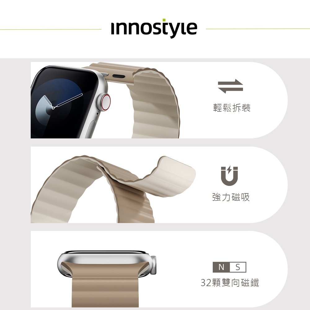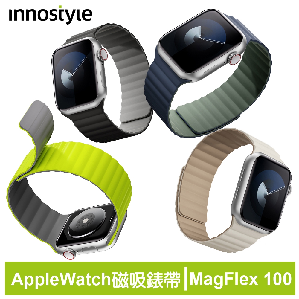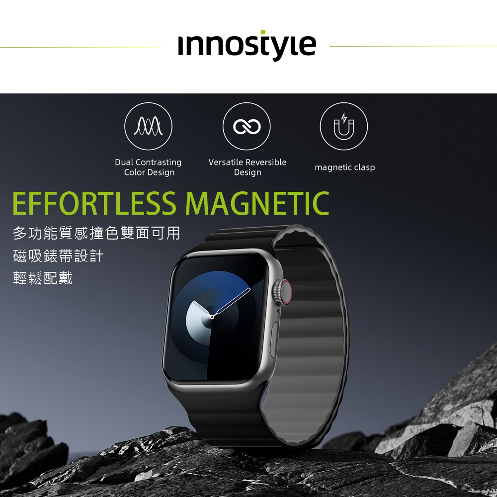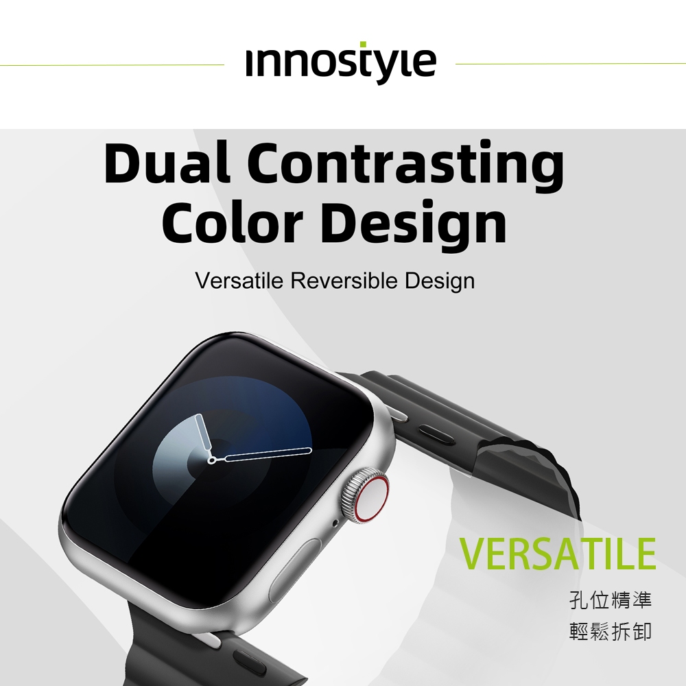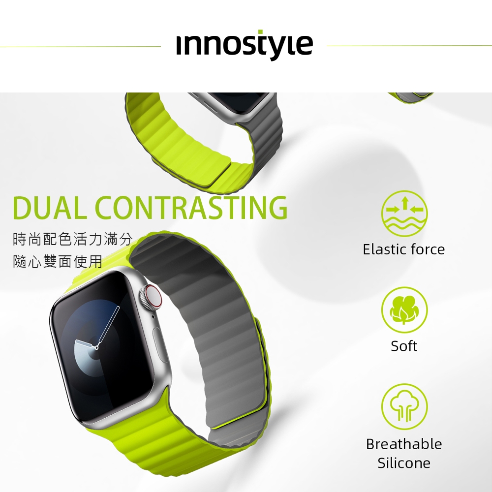 innostyle MagFlex100 Apple Watch 磁吸撞色雙面矽膠錶帶 42/44/45/46/49mm黑+灰|米+卡其|藍+綠|螢光綠+灰Wearable AccessoriesPICKOGEN 台灣旗艦店