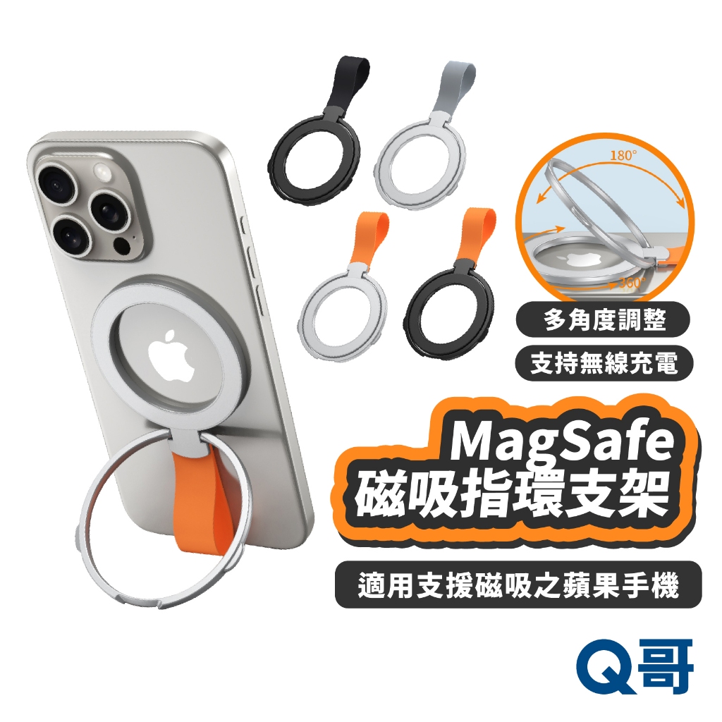 MagSafe 磁吸指環支架 磁吸 支架 指環 無線充電 手機支架 可調角度 折疊支架 立架 手機架 LG023鈦黑款+黑色指環|鈦黑款+橘色指環|鈦銀款+灰色指環|鈦銀款+橘色指環Phone GripsQ哥 旗艦商城|最專業的保護貼手機配件