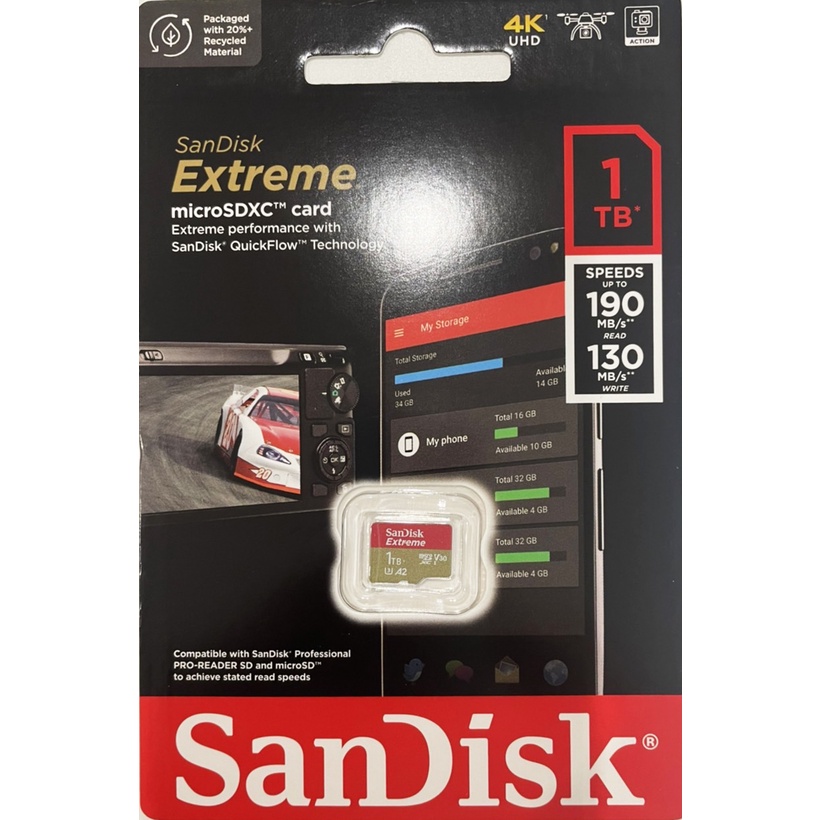 • SanDisk 1TB 1T microSDXC Extreme 190MB microSD SD 4K U3 儲存裝置