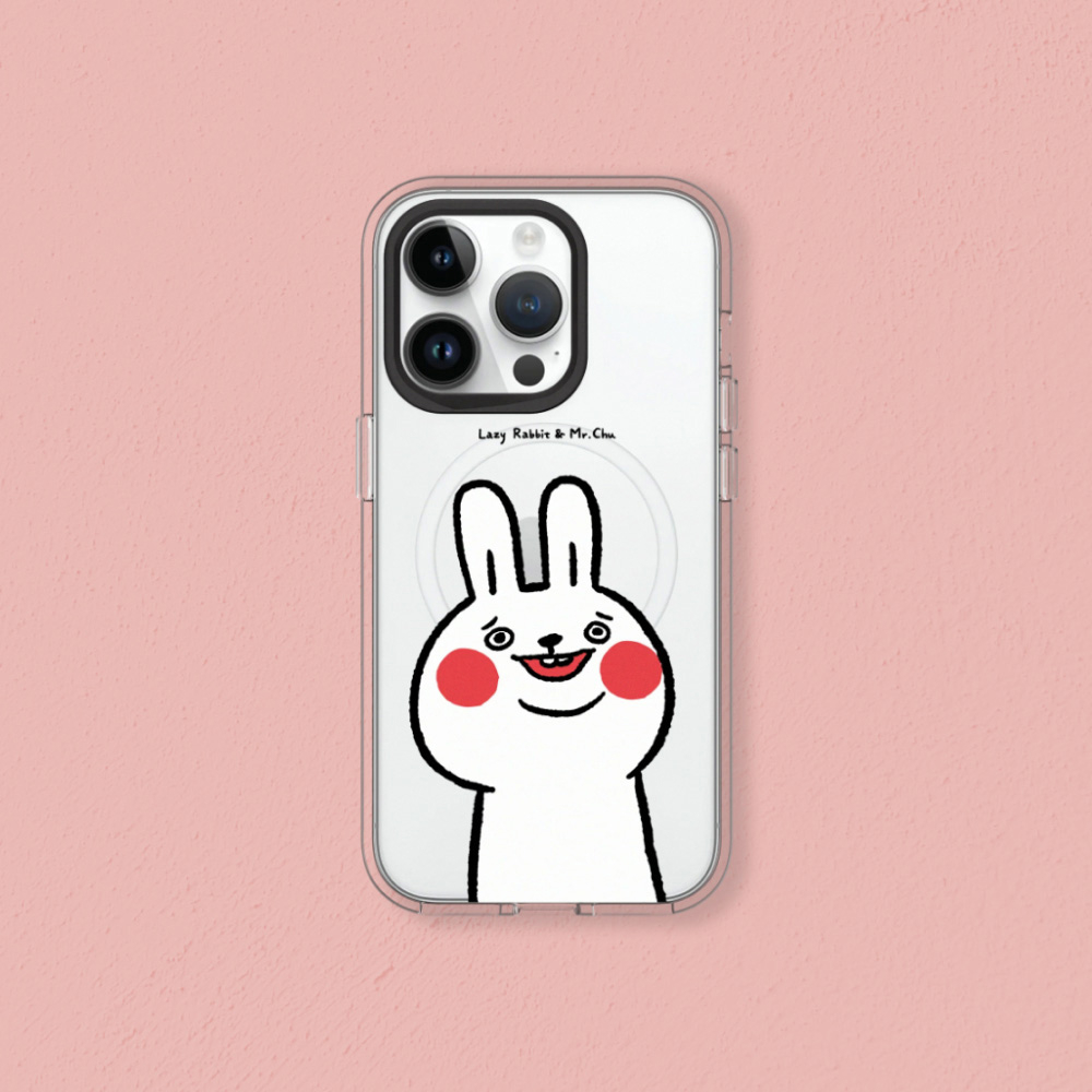 • 犀牛盾 適用iPhone Clear(MagSafe兼容)透明防摔手機殼|懶散兔與啾先生系列/傻笑