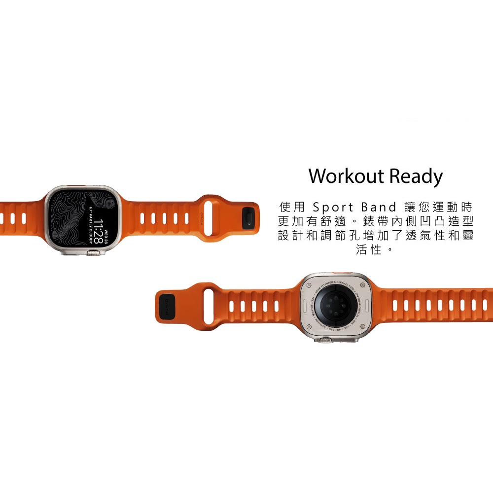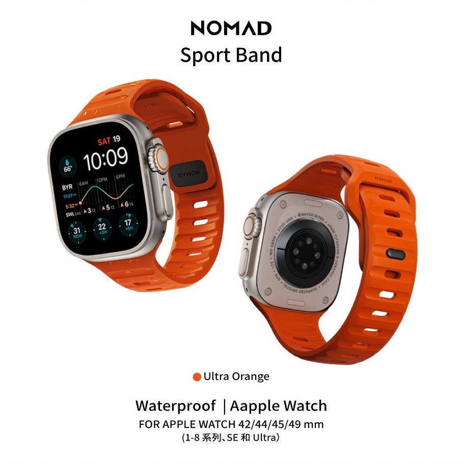 【美國NOMAD】Apple Watch專用運動風FKM橡膠錶帶-49/46/45/44mm-橘正常品|A+品Wearable AccessoriesNOMAD台灣官方旗艦店