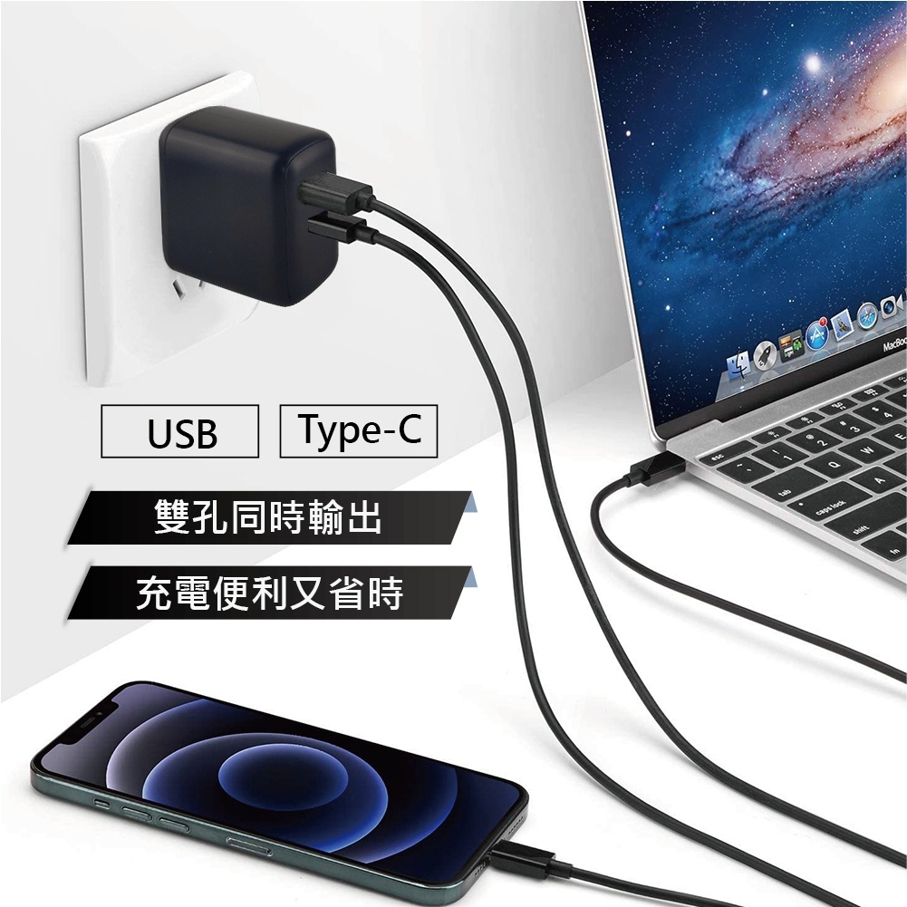 Mine 30W 雙孔 PD 快充頭 QC 快充 閃充 充電 頭 PD iPhone iPad 手機配件 插頭黑色|白色Cables, Chargers & ConvertersONAIR 手機配件專賣店
