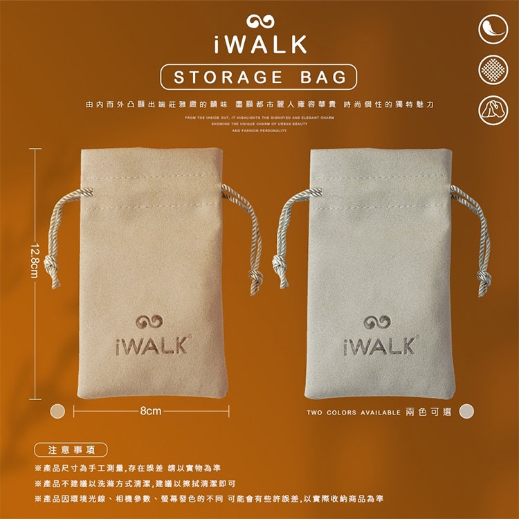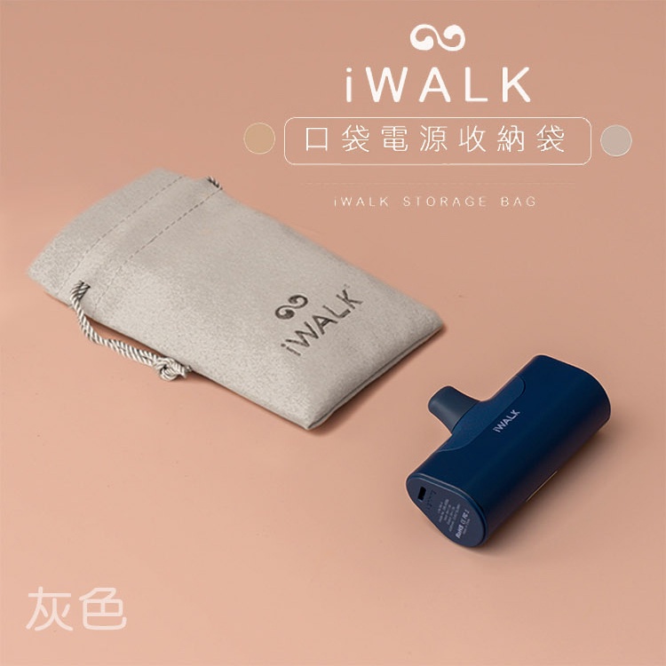 iWALK 收納袋 口袋電源專用收納袋 充電線收納袋 充電器收納袋 袋子 束口袋 磨毛材質 手感柔軟 質感佳奶茶色|灰色Mobile PouchesSHOWHAN手機周邊生活用品旗艦店