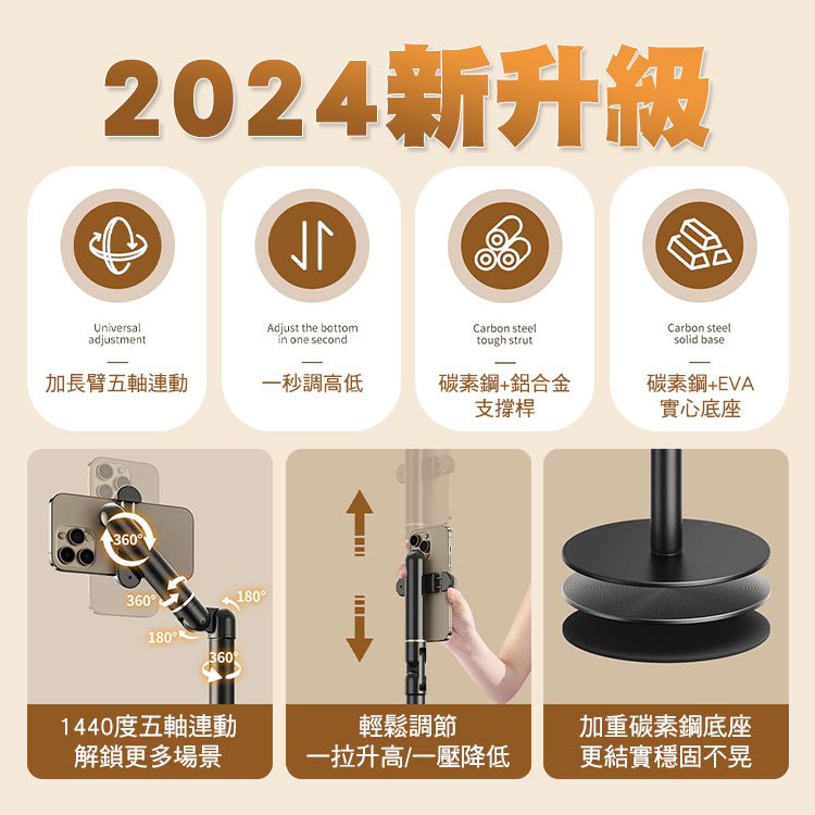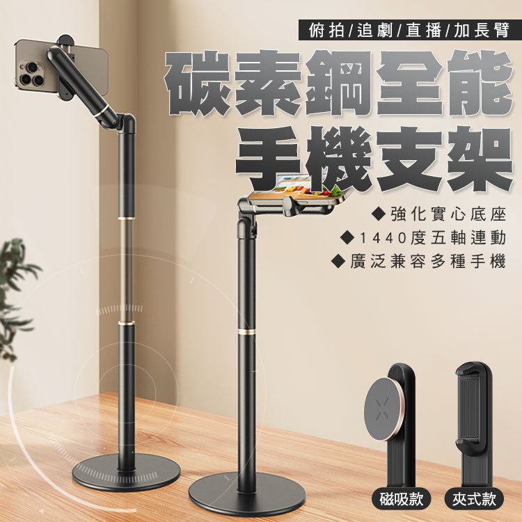 SHOWHAN 碳素鋼全能支架俯拍追劇直播加長臂手機支架 全能支架 手機架 鋁合金手機夾式|磁吸款Selfie AccessoriesSHOWHAN手機周邊生活用品旗艦店