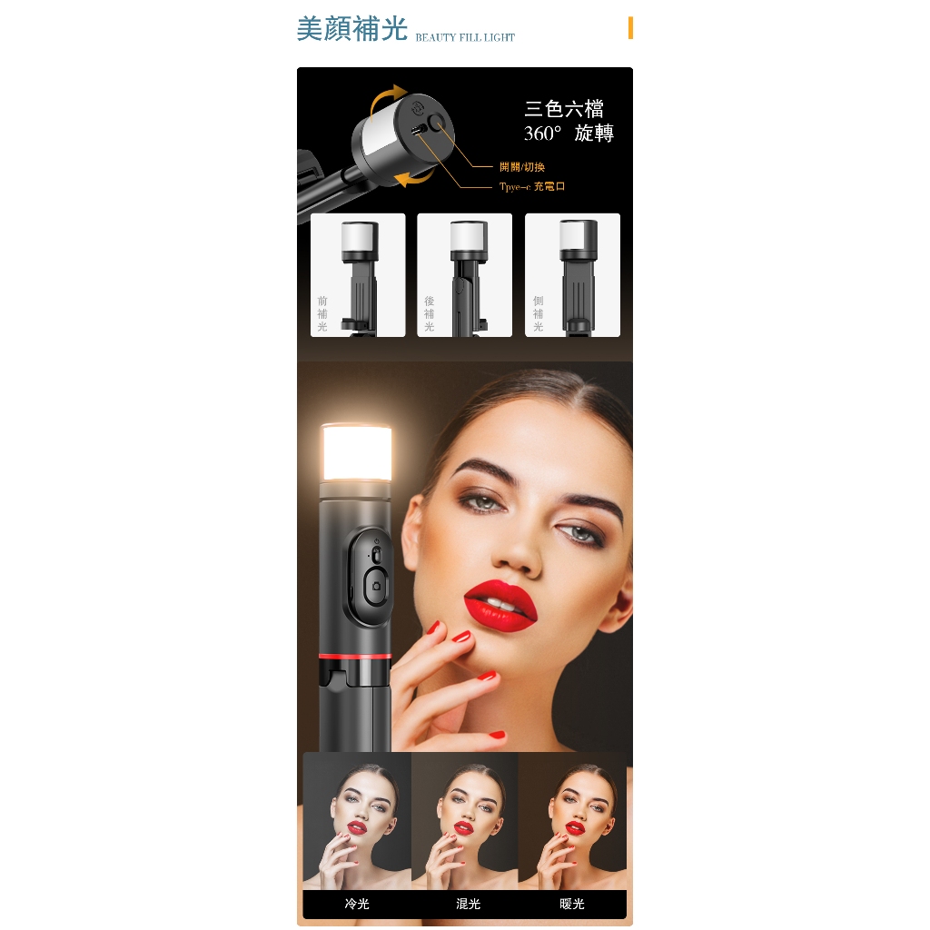 ONAIR MINI 魅影 補光燈 藍芽自拍棒 自拍桿 三腳架 自拍棒 自拍腳架 自拍神器 三腳架 迷你自拍杆 Q12MINI魅影 補光燈款 白色80公分Selfie AccessoriesONAIR 手機配件專賣店