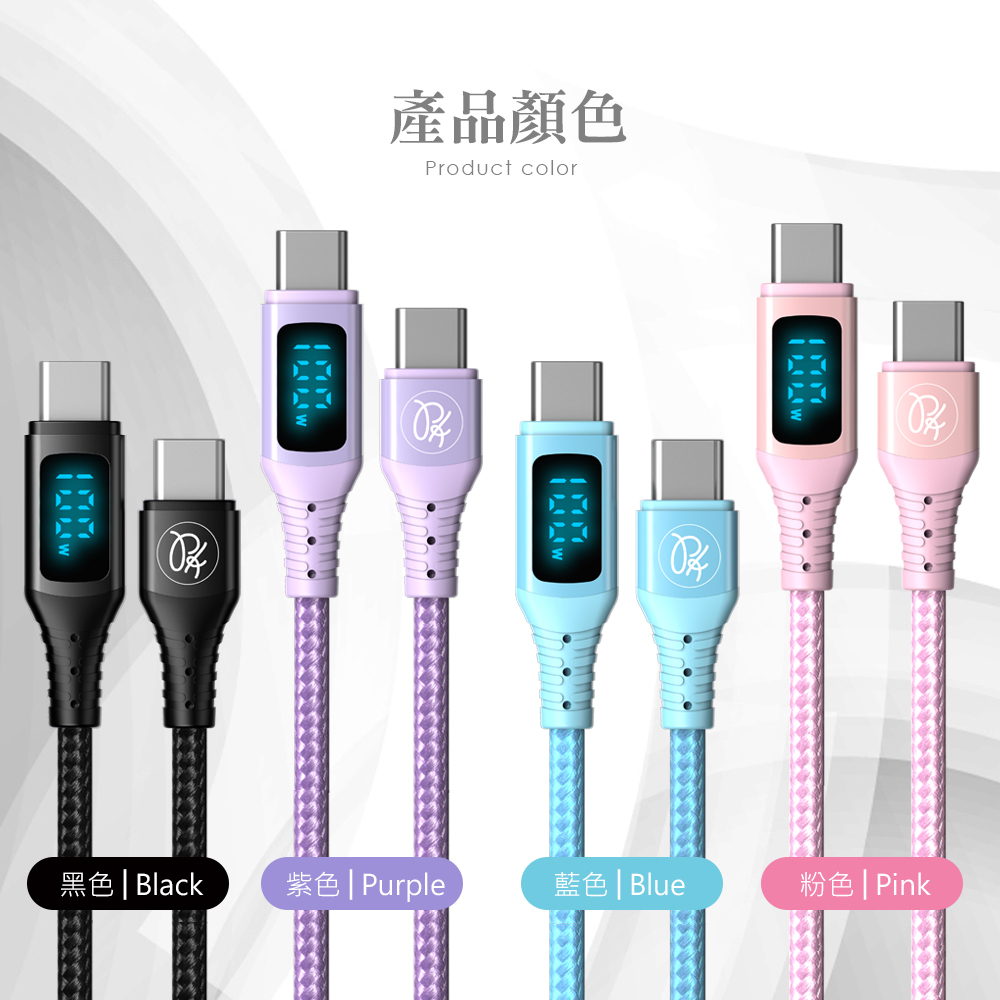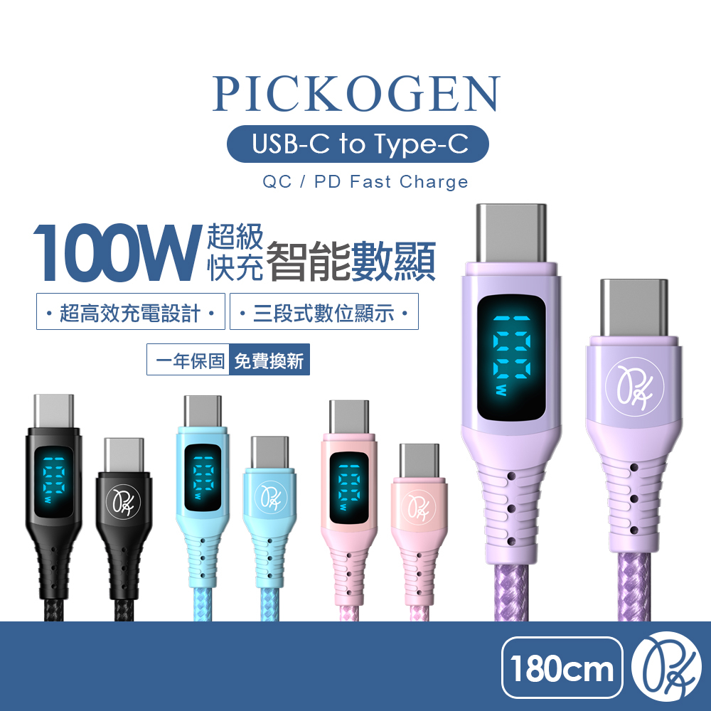 PICKOGEN 皮克全 雙Type-C/PD充電線傳輸線快充線閃充線 VAW數顯 QC4.0 維納斯 1.8M紫色|粉色|黑色|藍色Cables, Chargers & ConvertersPICKOGEN 台灣旗艦店
