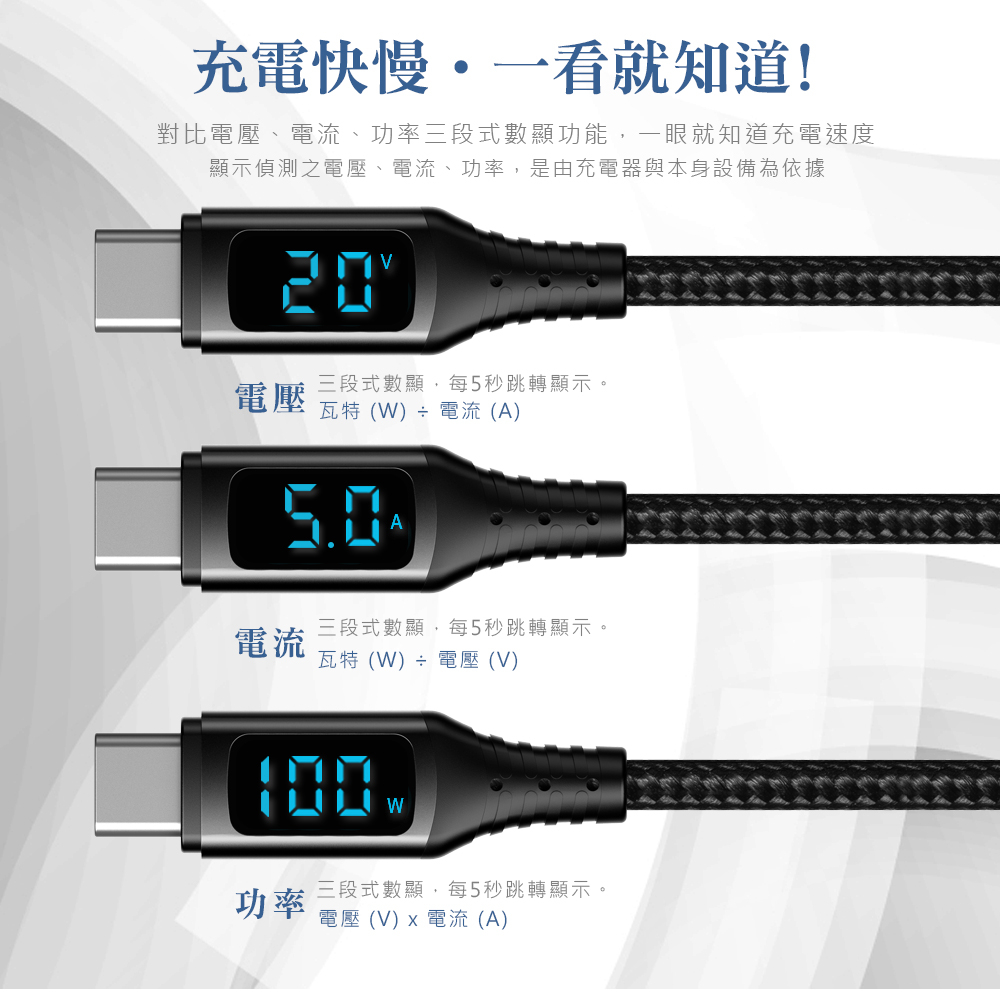 • PICKOGEN 皮克全 雙Type-C/PD充電線傳輸線快充線閃充線 VAW數顯 QC4.0 維納斯 1.8M