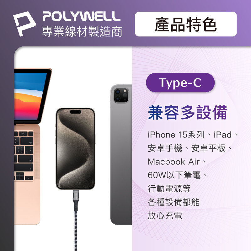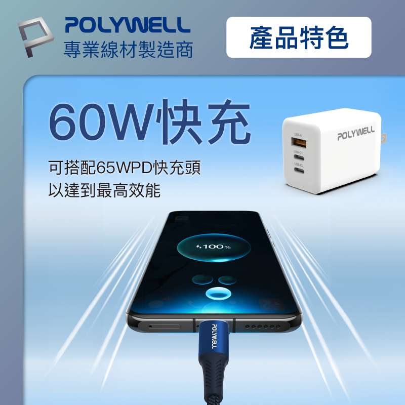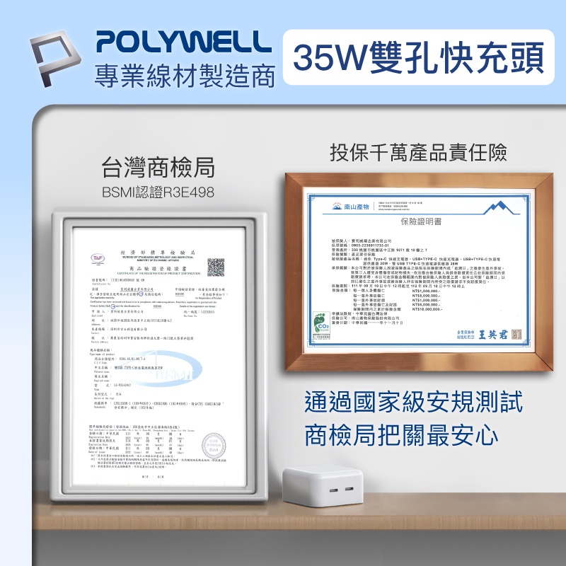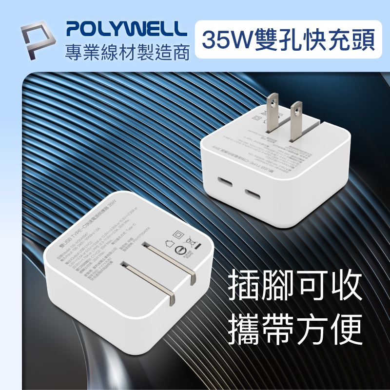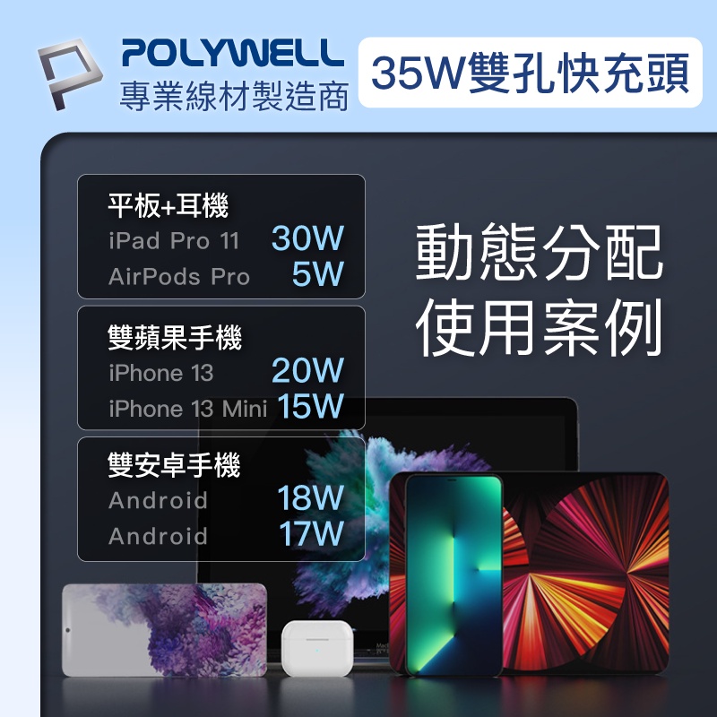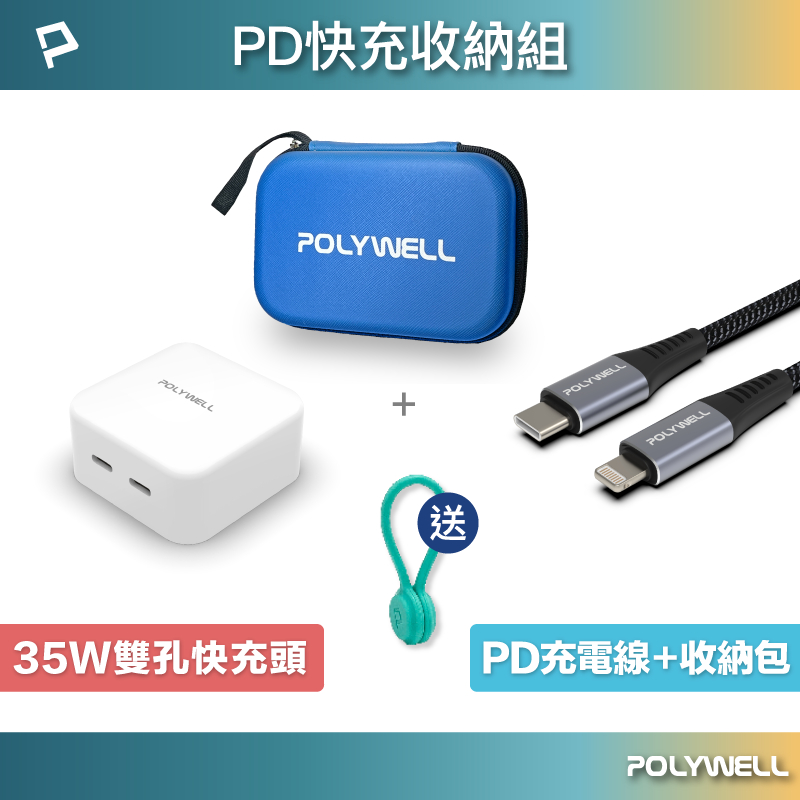 POLYWELL PD快充收納組 35W快充頭 USB-C Lightning 充電線 收納包 寶利威爾 台灣現貨