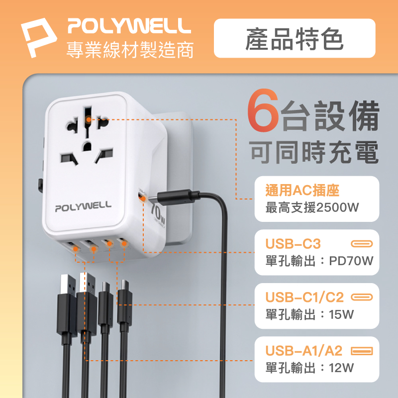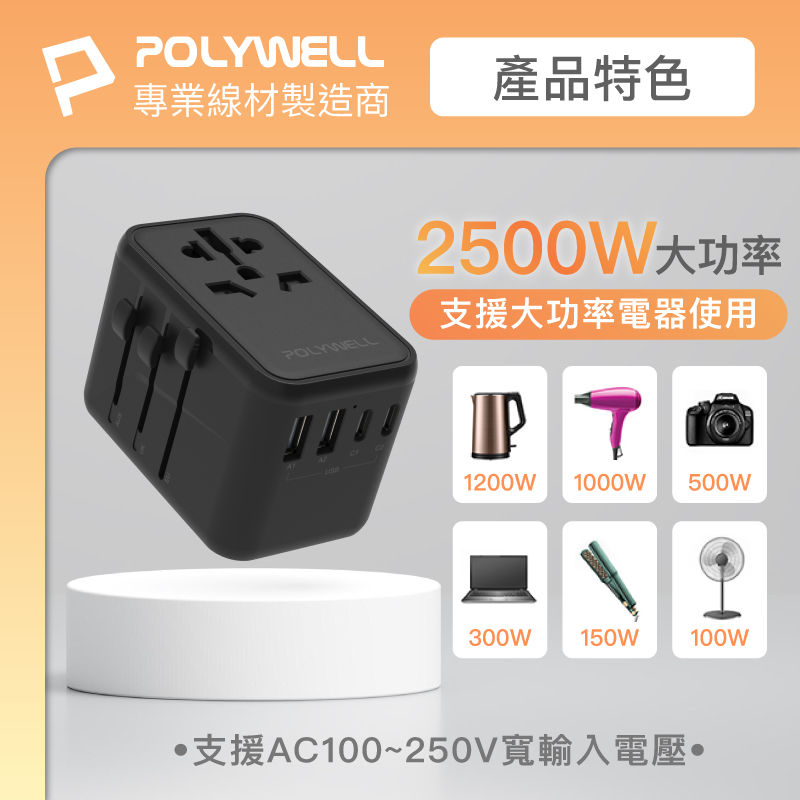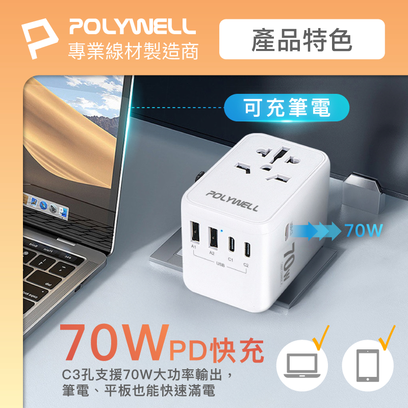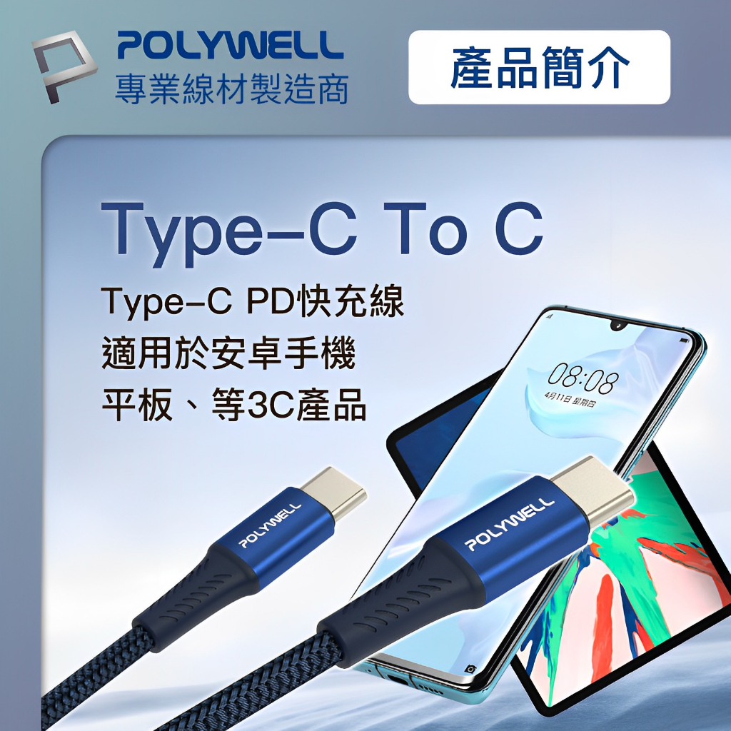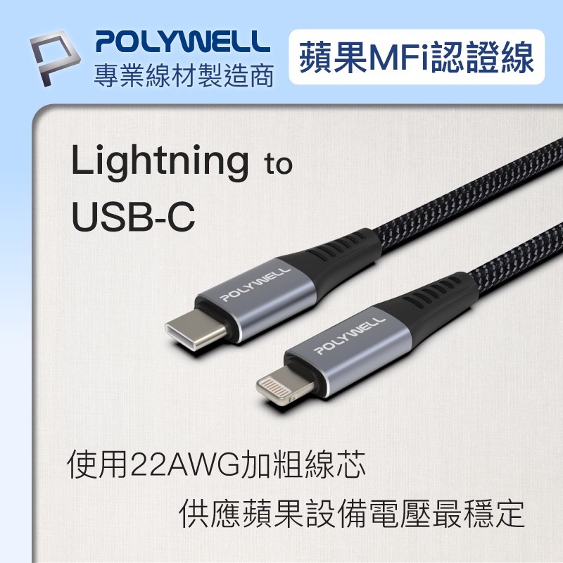 POLYWELL PD快充收納組 35W快充頭 USB-C Lightning 充電線 收納包 寶利威爾 台灣現貨