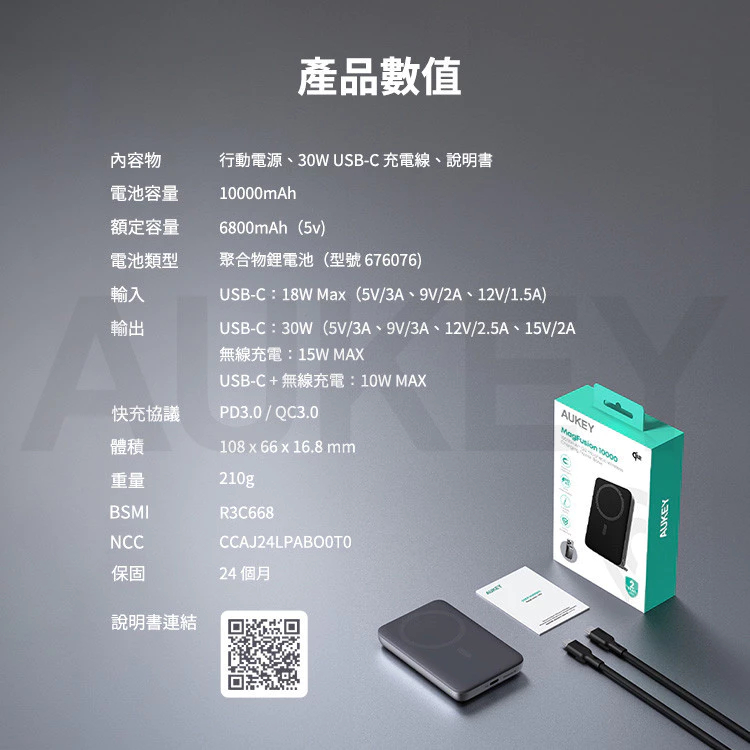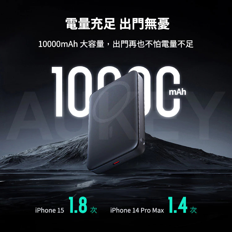 Aukey Qi2 磁吸無線行動電源 快充 10000mAh 行動電源 MagSafe TypeC 行充 AKY013Qi2 磁吸無線行動電源 10000mAPowerbanks & BatteriesQ哥 旗艦商城|最專業的保護貼手機配件
