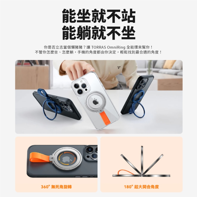 TORRAS OmniRing 全能環 MagSafe 指環旋轉支架 磁吸 指環 圖拉斯 手機架 手機支架 TRS11霧面黑|太空灰|銀橘撞|海軍藍|櫻花粉Phone GripsQ哥 旗艦商城|最專業的保護貼手機配件