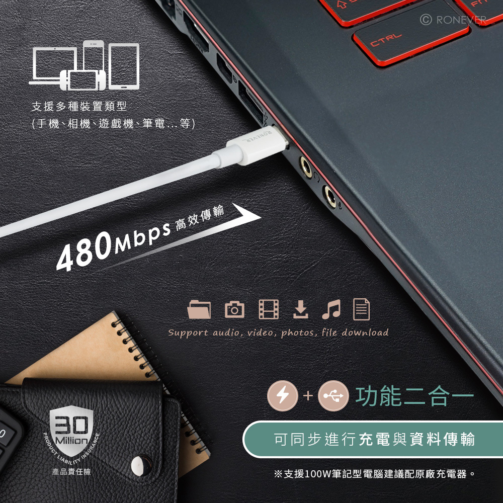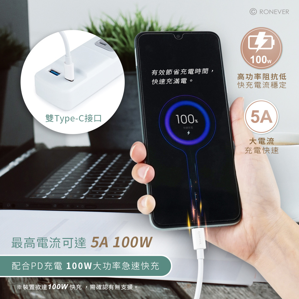 RONEVER VPC158 / Type-C 100W快充傳輸線VPC158Cables, Chargers & ConvertersRONEVER 官方品牌館