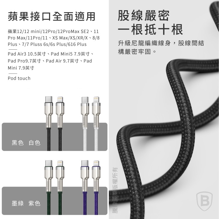 【Baseus倍思】20W蘋果金屬卡福樂 iPhone充電線/PD充電線 / 蘋果充電線白色(台灣版),1M|白色(台灣版),2M|紫色(台灣版),1M|紫色(台灣版),2M|綠色(台灣版),1M|綠色(台灣版),2M|黑色(台灣版),1M|黑色(台灣版),2MCables, Chargers & ConvertersNawies 手機配件 | 代理 倍思 / Lisen / amuok