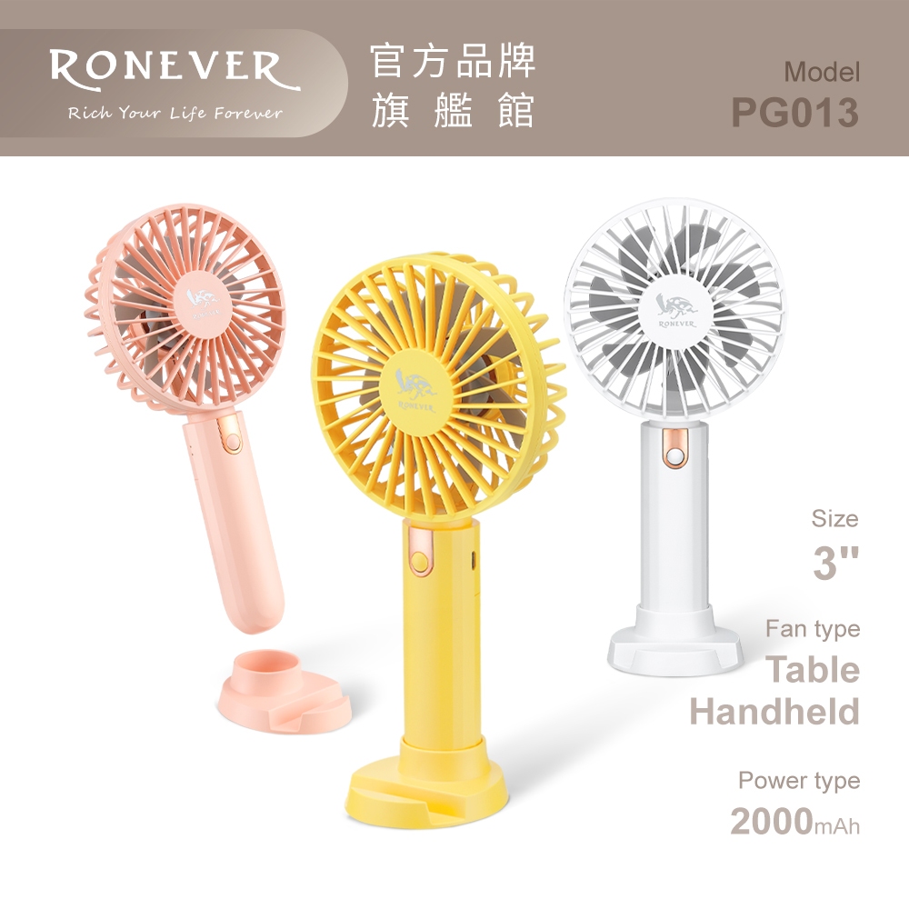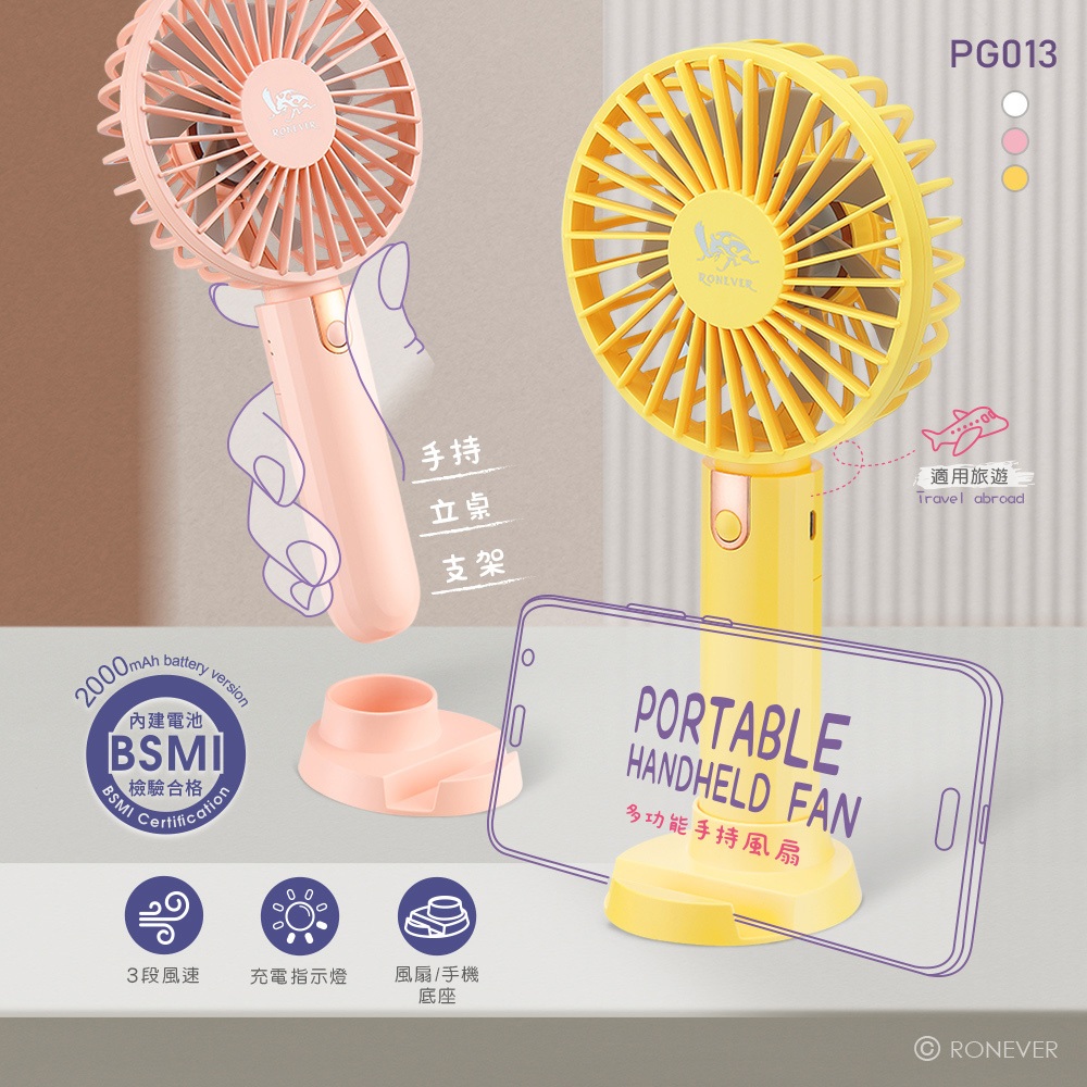 RONEVER PG013 / 多功能手持風扇白色|粉色|黃色USB & Mobile FansRONEVER 官方品牌館