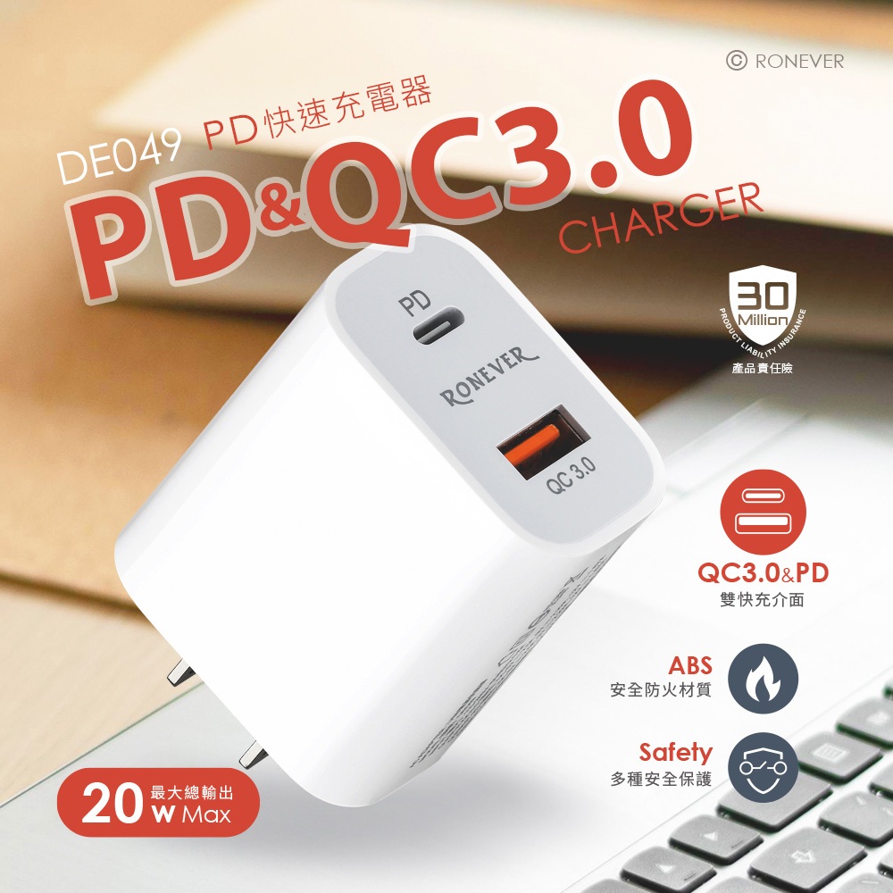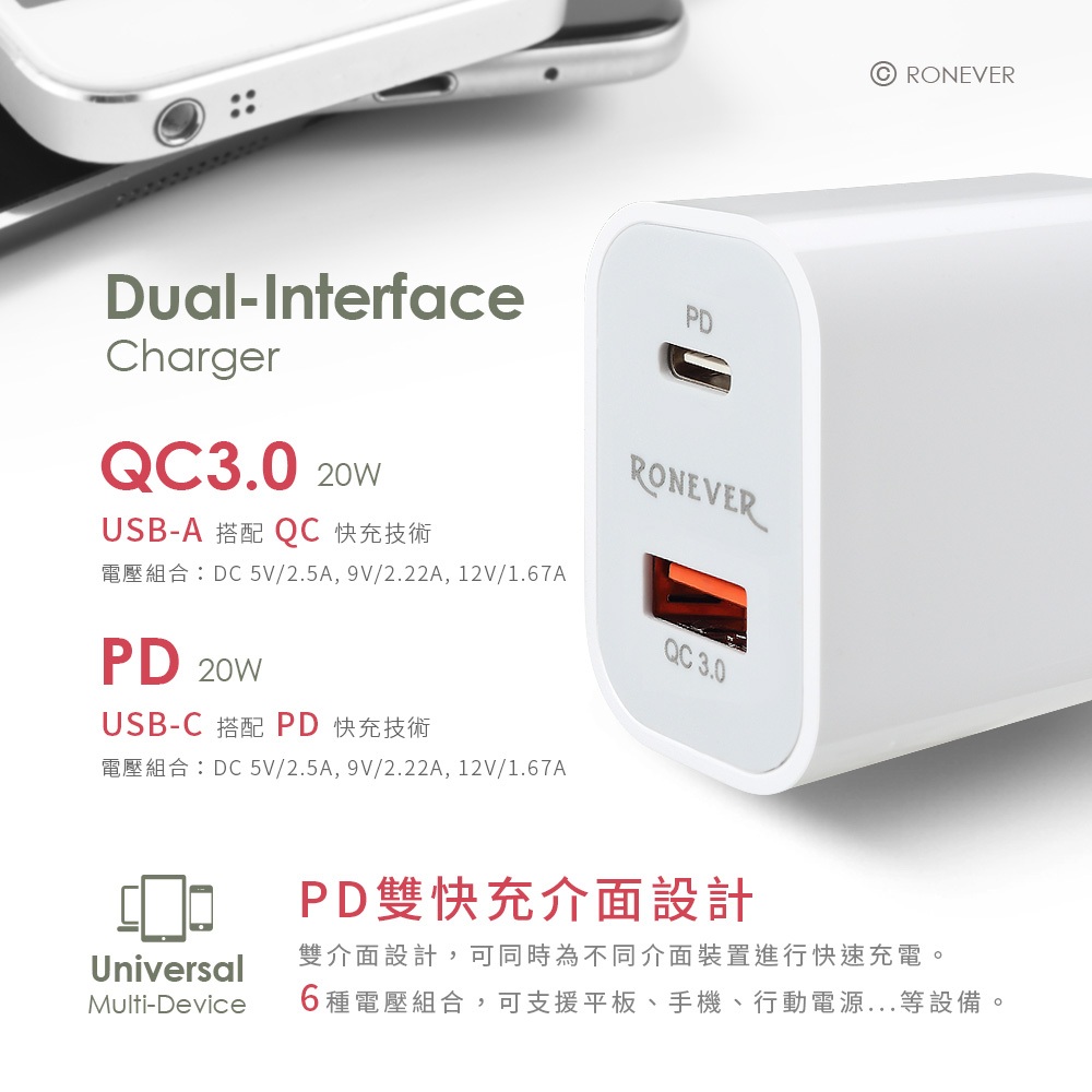 RONEVER DE049 / 20W PD電源供應器DE049Cables, Chargers & ConvertersRONEVER 官方品牌館