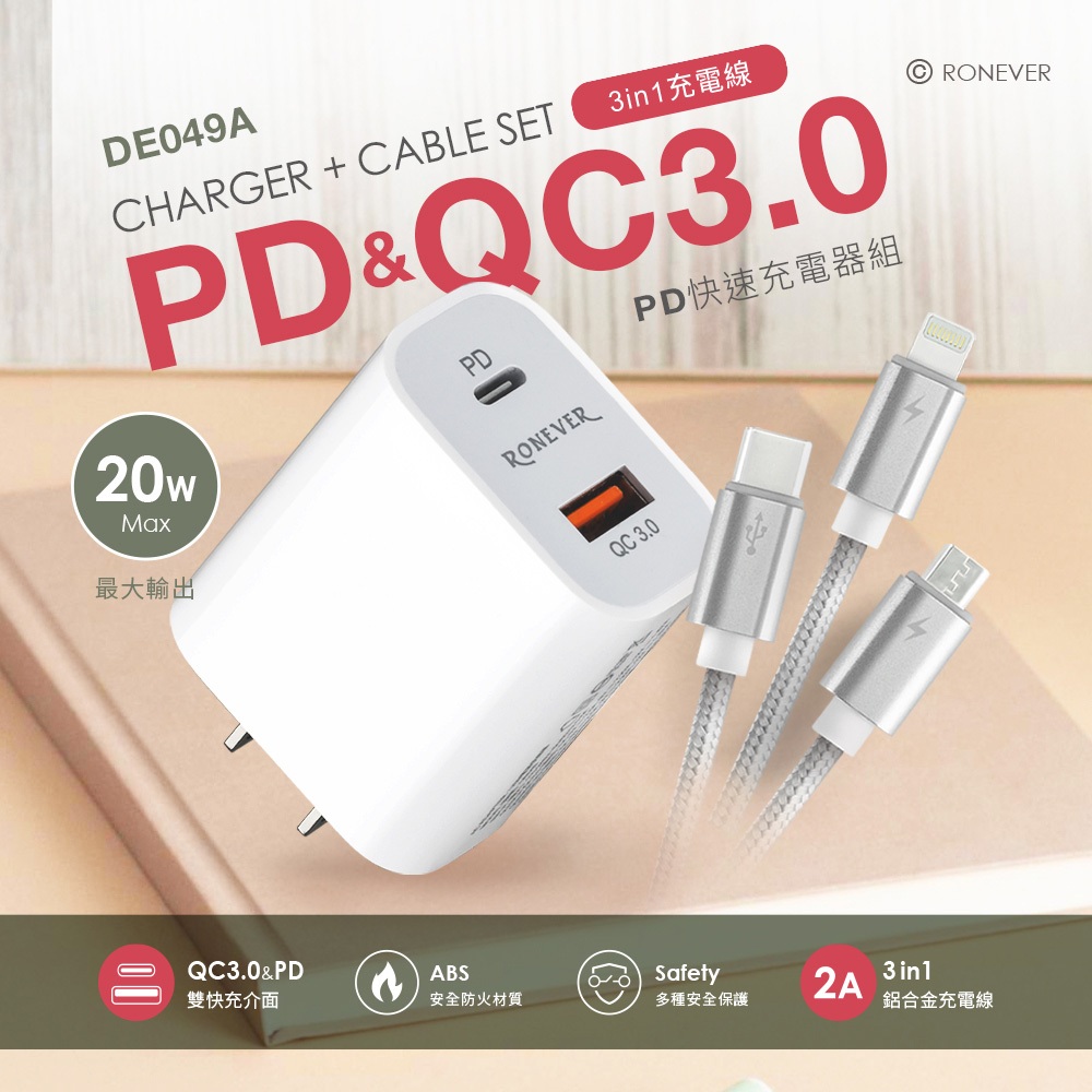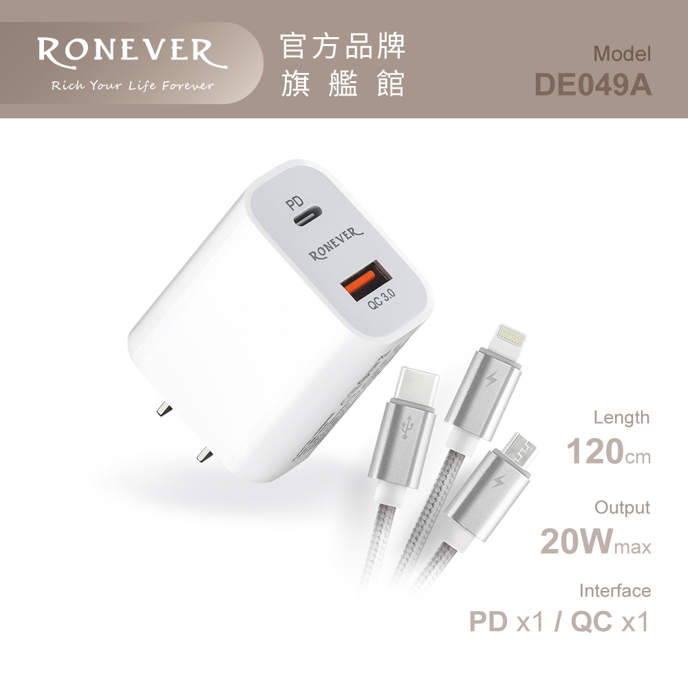 RONEVER DE049A / 20W PD電源供應器組DE049ACables, Chargers & ConvertersRONEVER 官方品牌館