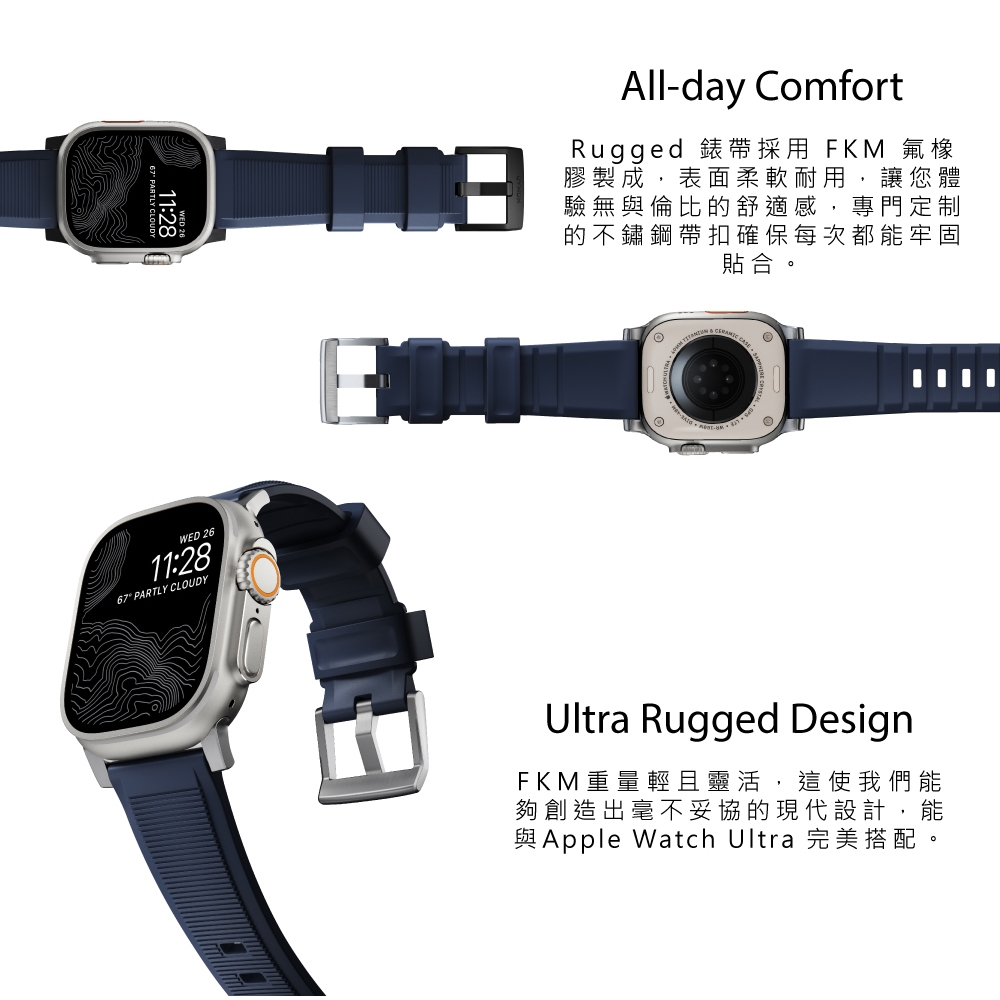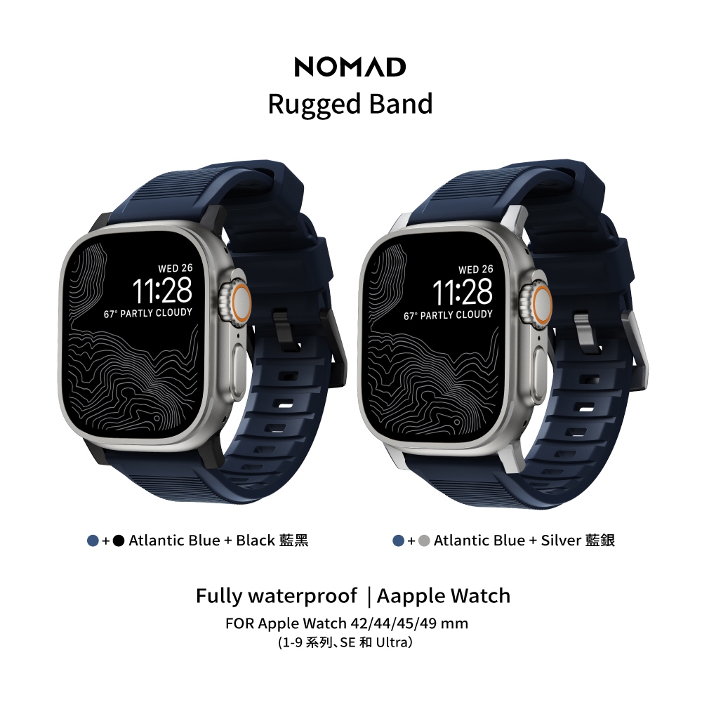 【美國NOMAD】Apple Watch專用高性能橡膠質感錶帶-49/46/45/44mm- 藍黑/ 藍銀藍黑|藍銀|藍銀(A+品)|藍黑(A+品)Wearable AccessoriesNOMAD台灣官方旗艦店
