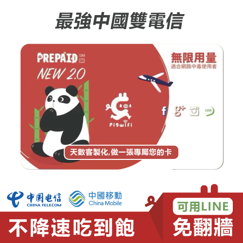 PIGWIFI 最強中國多電信 翻牆不降速網卡 中國移動 中國聯通 中國電信 不降速 上網SIM卡 WIFI卡 網卡