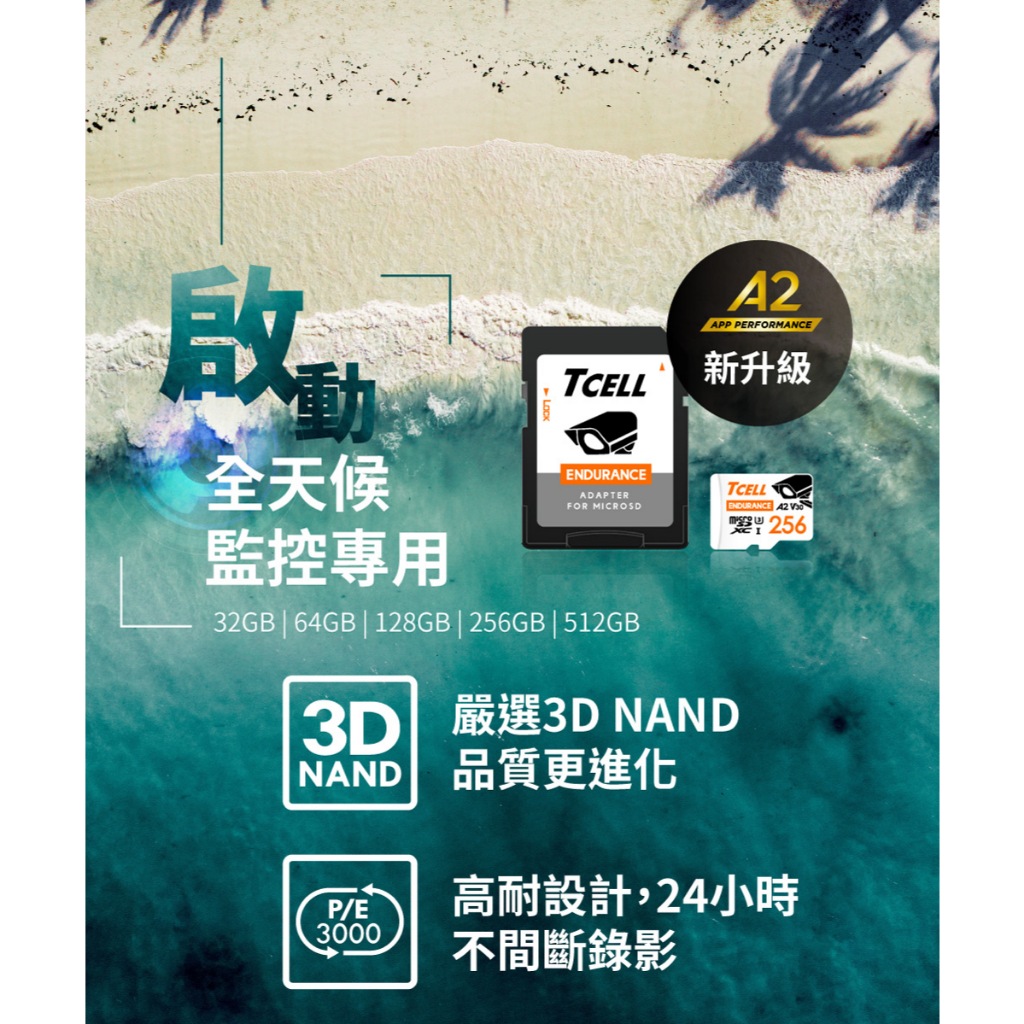 台灣製造 TCELL 冠元 監視器專用記憶卡 MicroSD A2 U3 128GB 256GB 512GB 監控專用512GB|128GB|256GBMemory CardsQD 酷弟3C