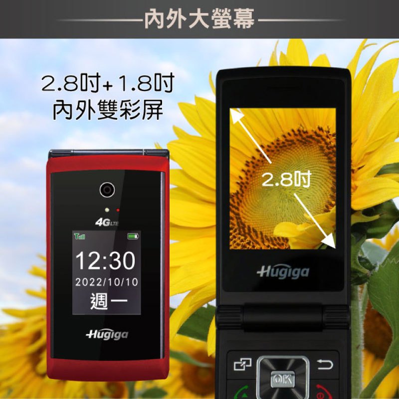 Hugiga 鴻碁 A9 4G 摺疊 老人機 全配 雙螢幕 按鍵式 折疊手機 按鍵手機 大螢幕 長輩機 翻蓋機