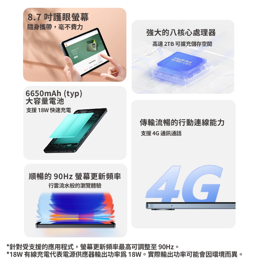 小米 Redmi Pad SE 8.7 4G (6G/128G) 平板電腦 LTE 可插卡 通話 公司貨 原廠保固 Q哥天空藍|石墨灰|青翠綠Q哥 3C資訊通訊生活旗艦館