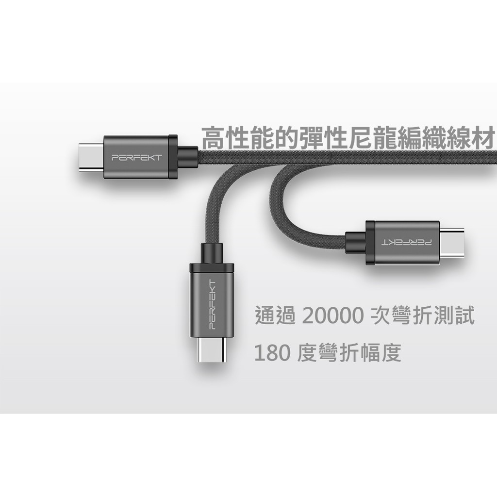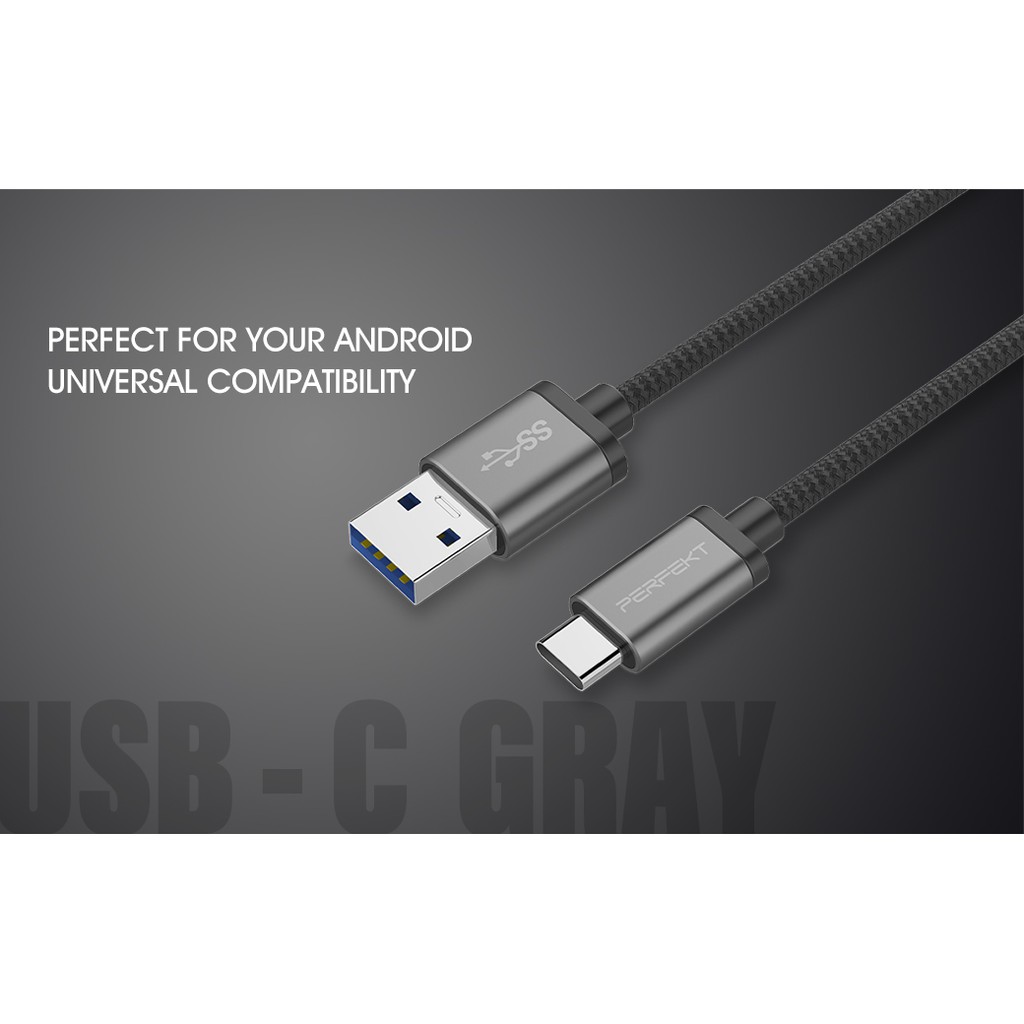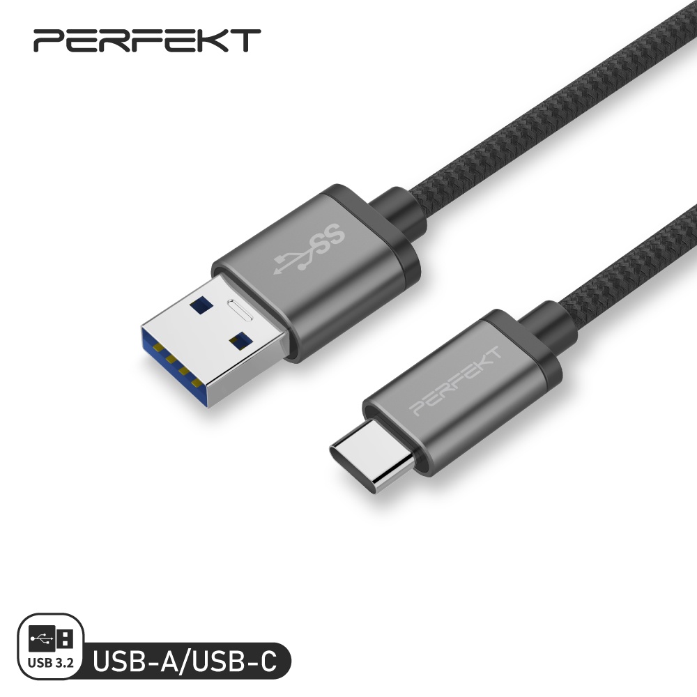 • PERFEKT USB 3.2 Type C to USB A 金屬編織快速充電傳輸線-300cm (深太空灰)