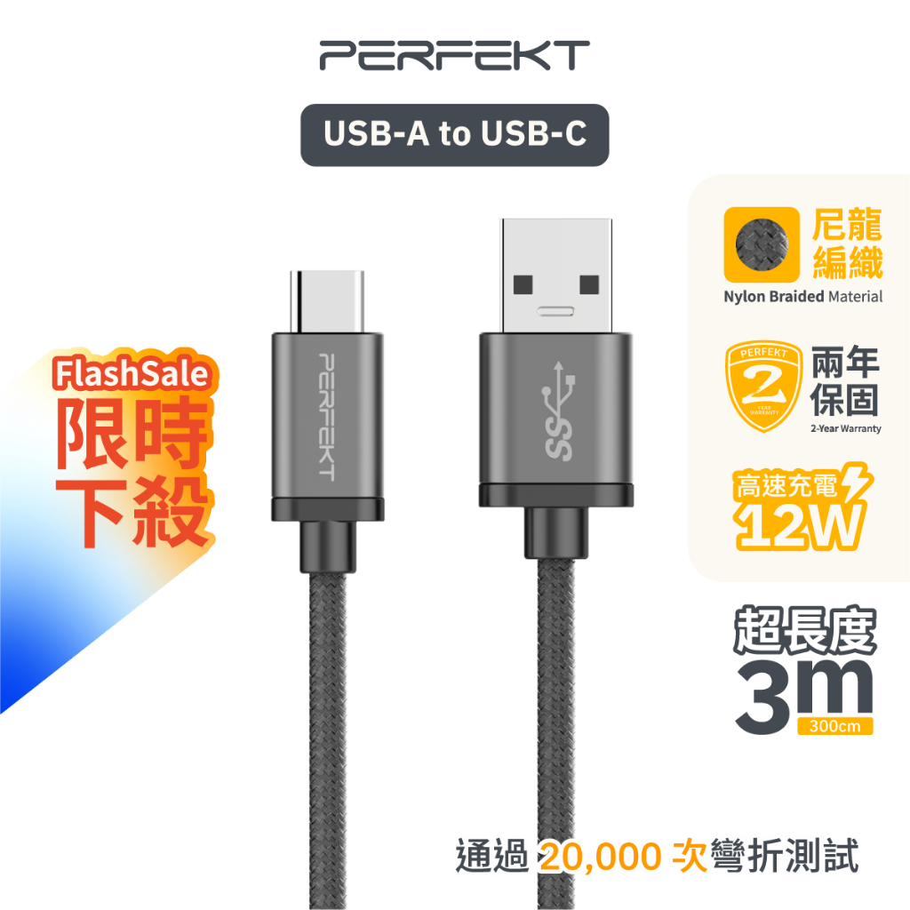 PERFEKT USB 3.2 Type C to USB A 金屬編織快速充電傳輸線-300cm (深太空灰)PERFEKT USB 3.2 Type C to USB A 金屬編織快速充電傳輸線-300cm (深太空灰)Cables, Chargers & ConvertersPerfekt 官方旗艦店