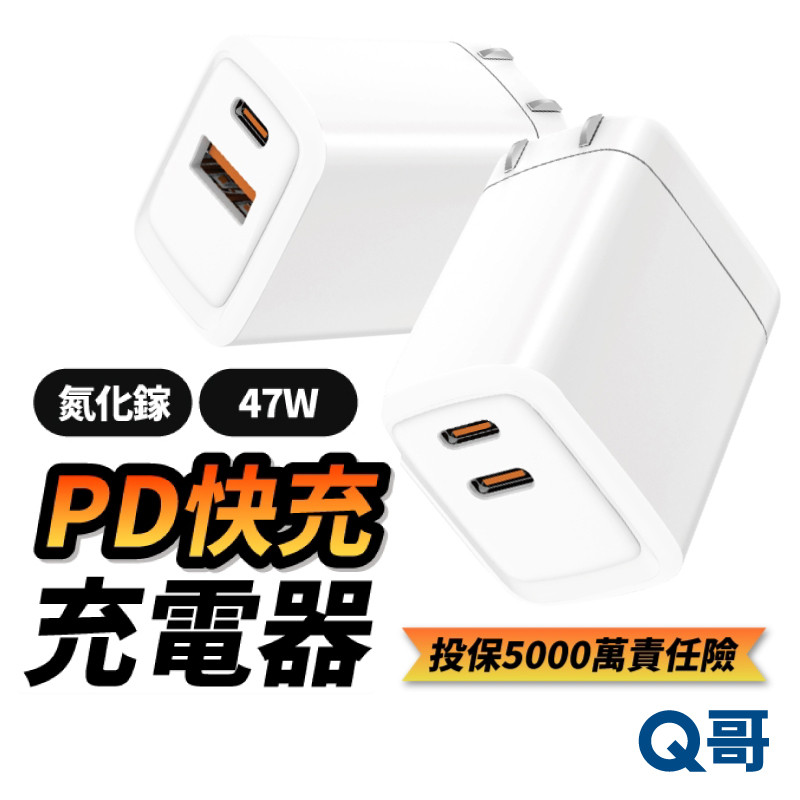 Q哥 47W 氮化鎵 雙孔 TypeC USB-A 快充頭 PD快充 充電頭 適用 iPhone 16 充電器 B018雙Type-C 47W|USB-A to Type-C 47WCables, Chargers & ConvertersQ哥 3C資訊通訊生活旗艦館