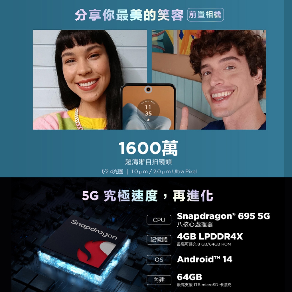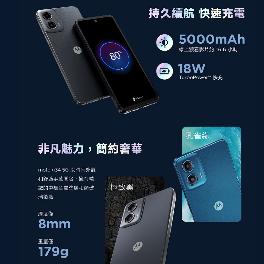 Motorola Moto G34 5G (4G/128G) 美國品牌 6.5吋 120Hz 原廠保固 新機 空機 手機極致黑(4G+128G)|孔雀綠(4G+128G)Q哥 3C資訊通訊生活旗艦館