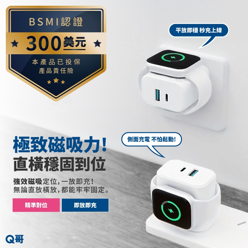 Q哥 20W 雙孔手錶無線 快充頭 適用 Apple Watch iPhone PD 快充 充電器 蘋果手錶 B02520W TypeC+USB A+手錶充Cables, Chargers & ConvertersQ哥 電玩旗艦商城|Switch2 PS5 遊戲片 Xbox ptcg寶可夢