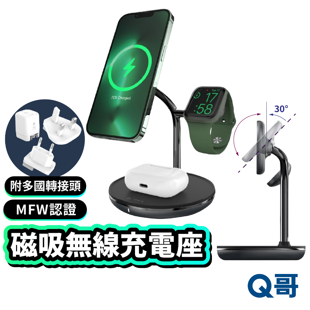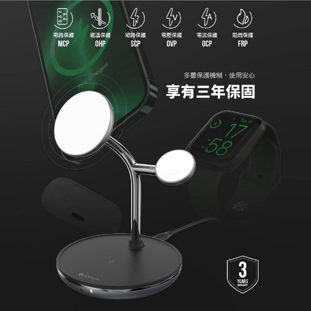 ADAM亞果元素 OMNIA M3+ 三合一磁吸無線充電座 MFM認證 適用蘋果手錶耳機 充電座 充電架 快充 AD09三合一磁吸無線充電座Cables, Chargers & ConvertersQ哥 旗艦商城|最專業的保護貼手機配件