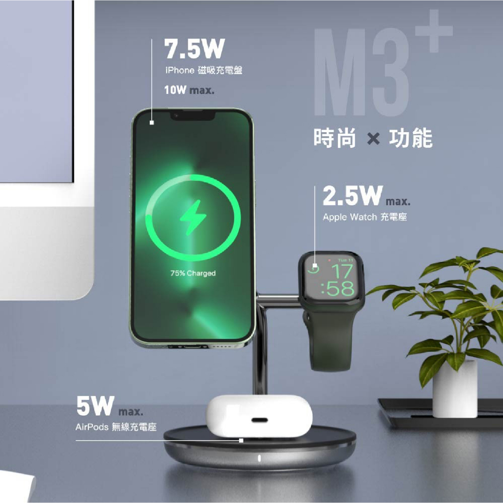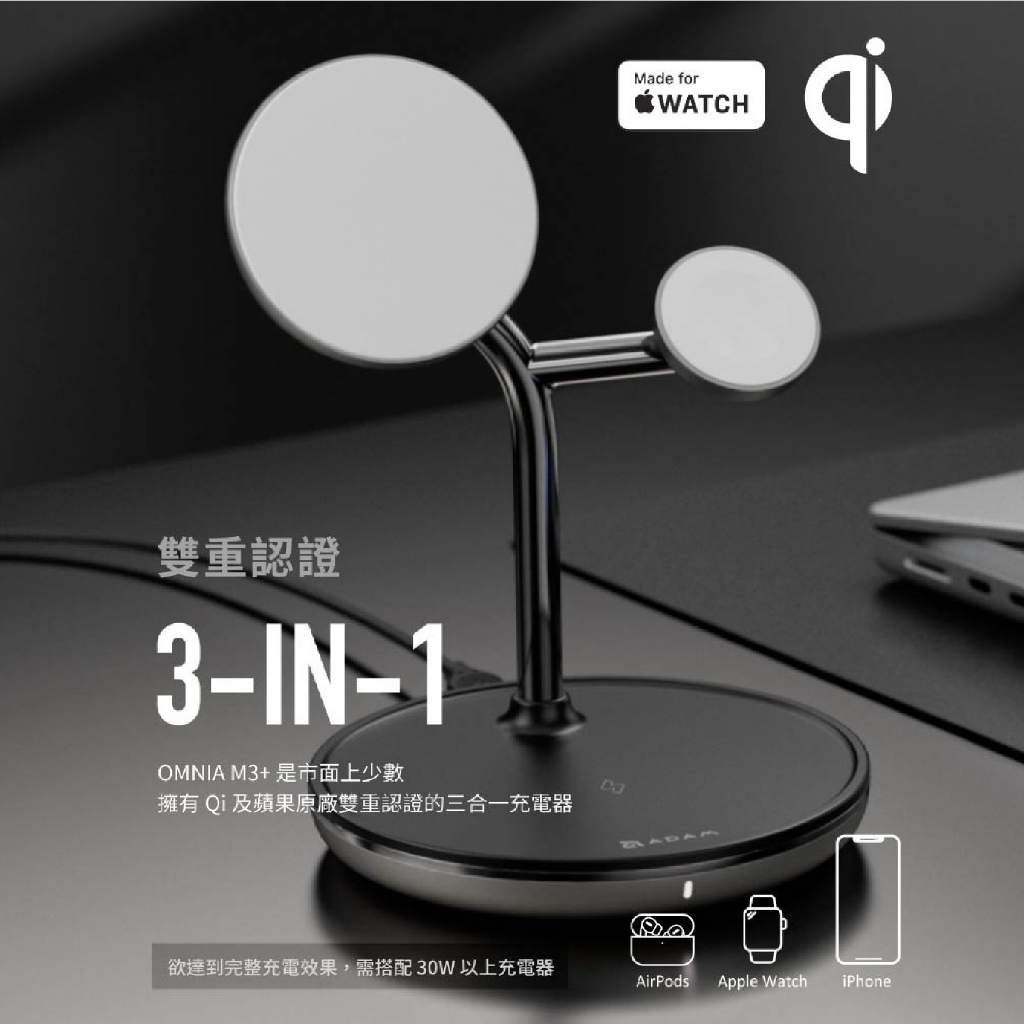 ADAM亞果元素 OMNIA M3+ 三合一磁吸無線充電座 MFM認證 適用蘋果手錶耳機 充電座 充電架 快充 AD09