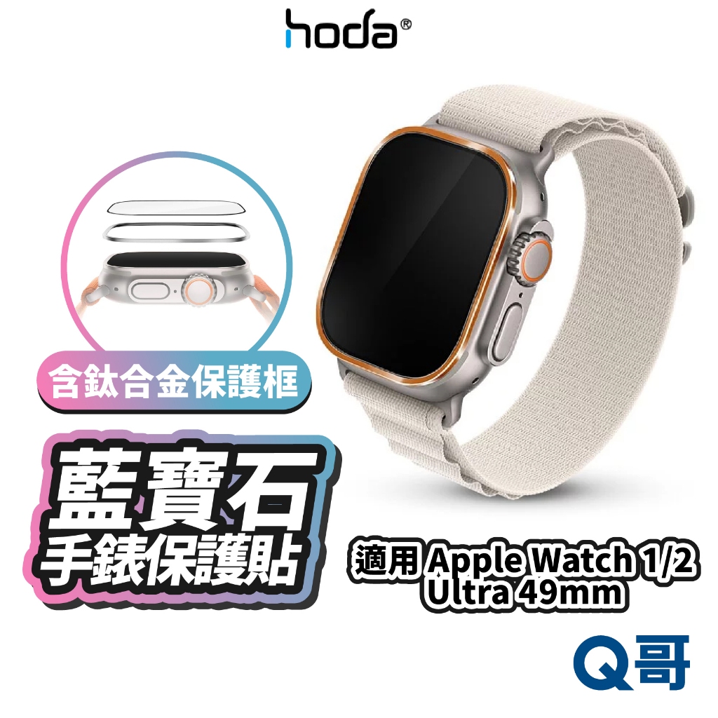Hoda 藍寶石 保護貼 適用 Apple Watch Ultra 49mm 含鈦合金保護框 蘋果手錶 HOD029天峰藍|太空灰|金|紅|深紫|銀|橘|霧面銀|櫻花粉Screen ProtectorsQ哥 旗艦商城|最專業的保護貼手機配件