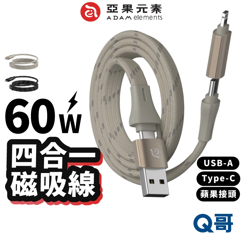 ADAM 亞果元素 60W 四合一磁吸 充電線 MS401 MF401 TypeC USB-A 編織線 傳輸線 AD87MS401|60W|圓線|黑色|MF401|60W|扁線|黑色|MF401|60W|扁線|鈦色|MS401|60W|圓線|鈦色Cables, Chargers & ConvertersQ哥 旗艦商城|最專業的保護貼手機配件